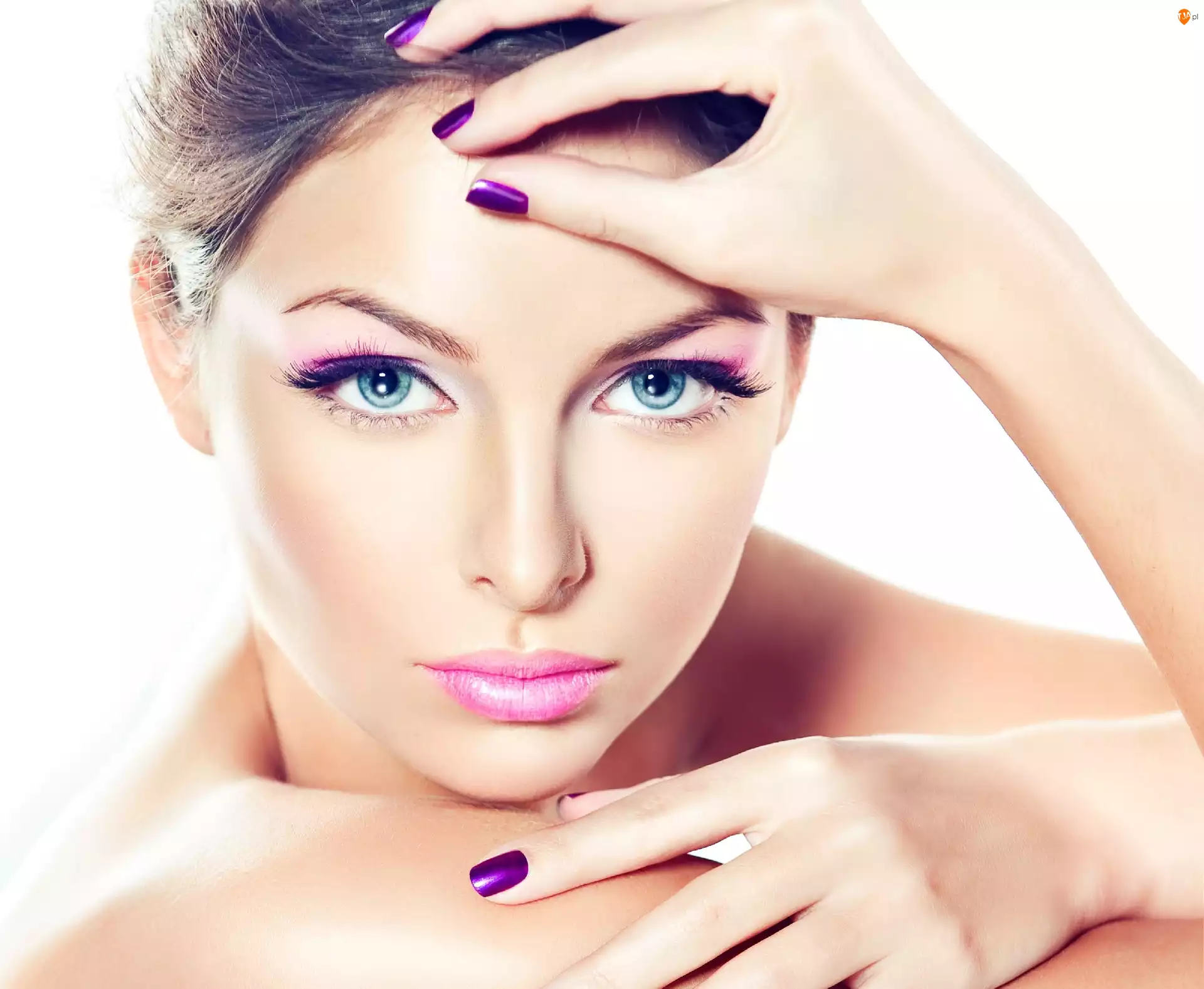 Kobieta, Paznokcie, Makijaż, Fioletowe
