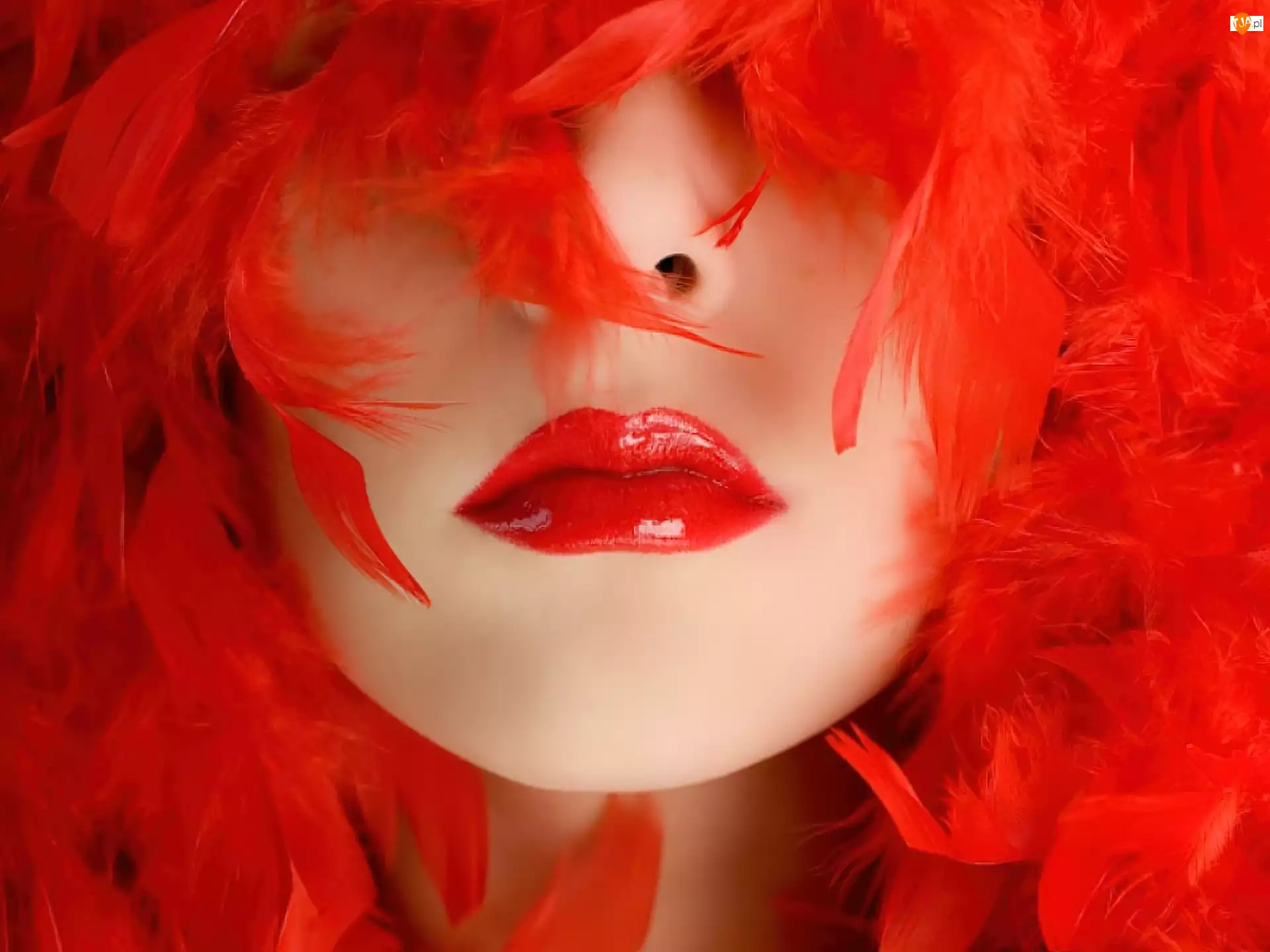 Kobieta, Pióra, Czerwone, Usta