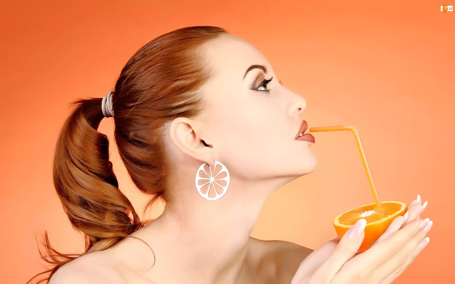 Kobieta, Pomarańcza, Kucyk, Kolczyk