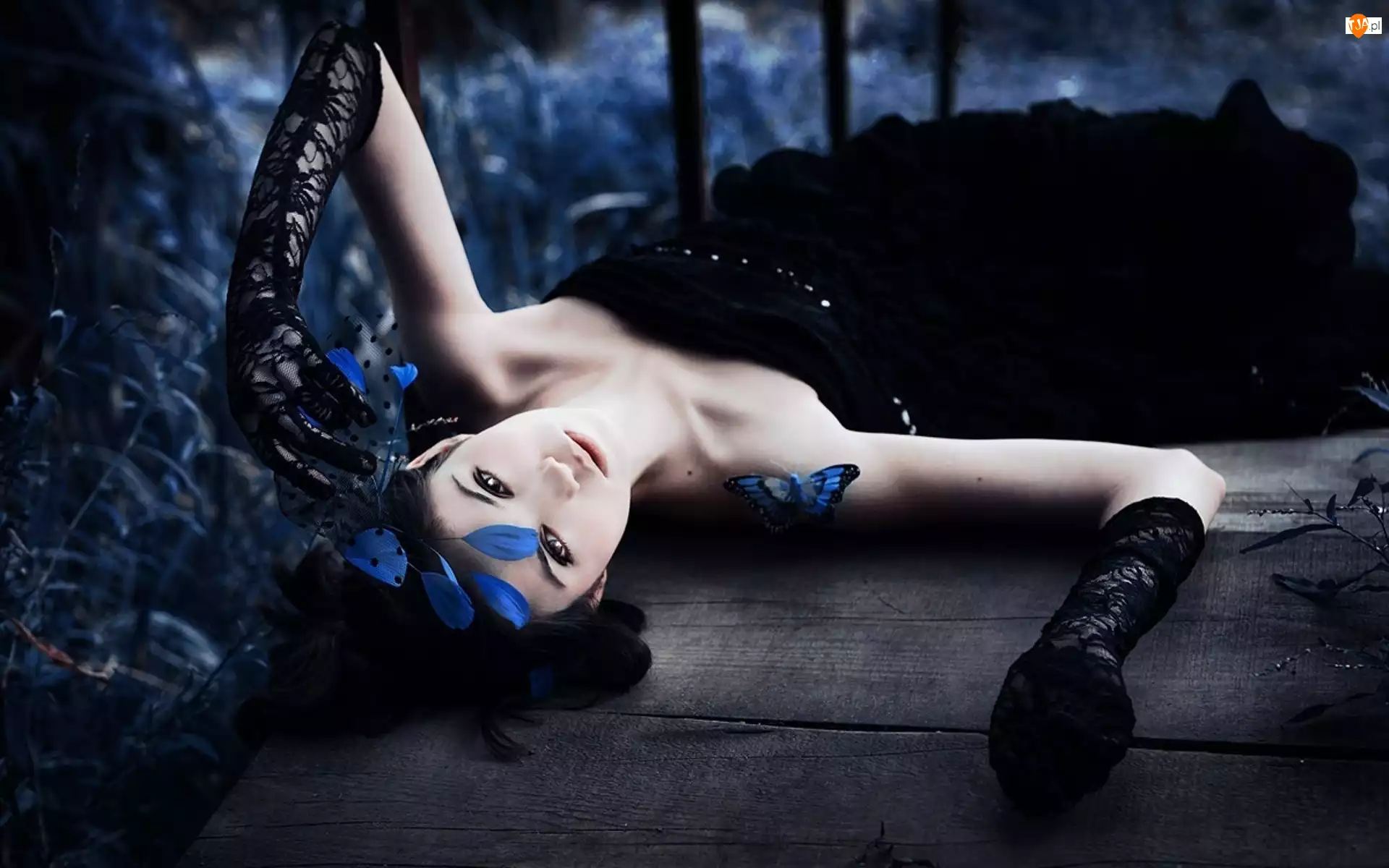 Kobieta, Rękawiczki, Sukienka, Motyle