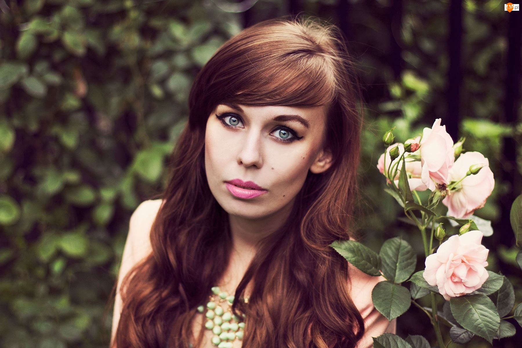 Kobieta, Róże, Szatynka, Różowe