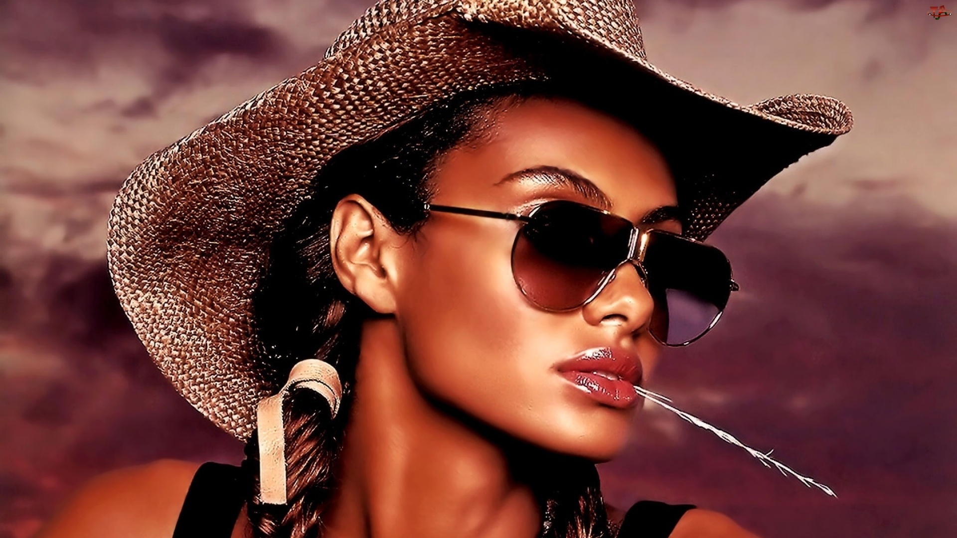 Kobieta, Słoneczne, Kapelusz, Okulary