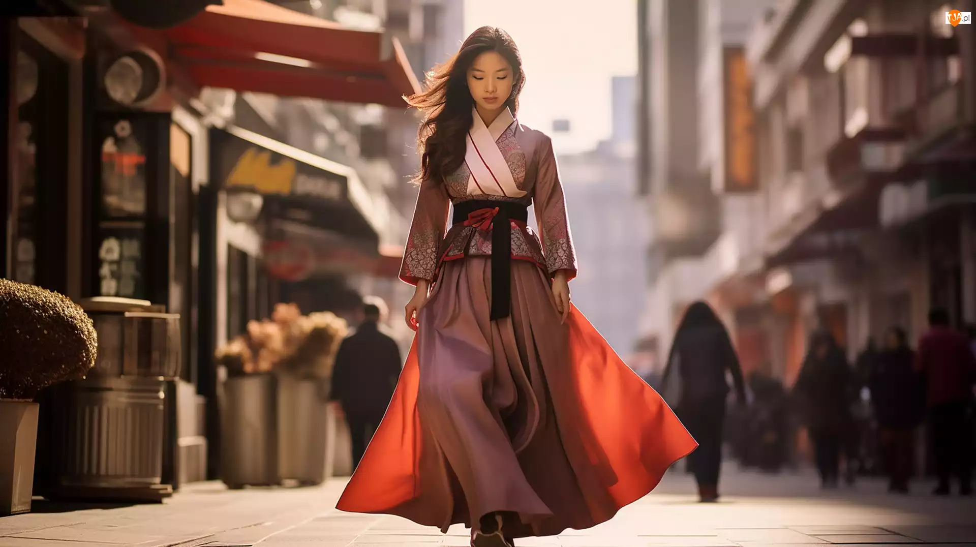 Strój, Ulica, Azjatka, Kobieta, Hanbok