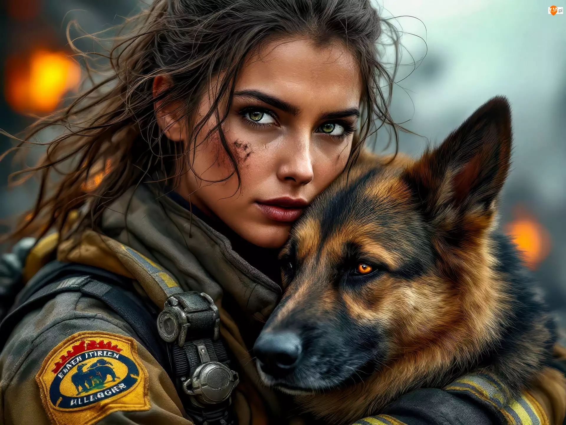 Owczarek niemiecki, Kobieta, Strażaczka, Pies