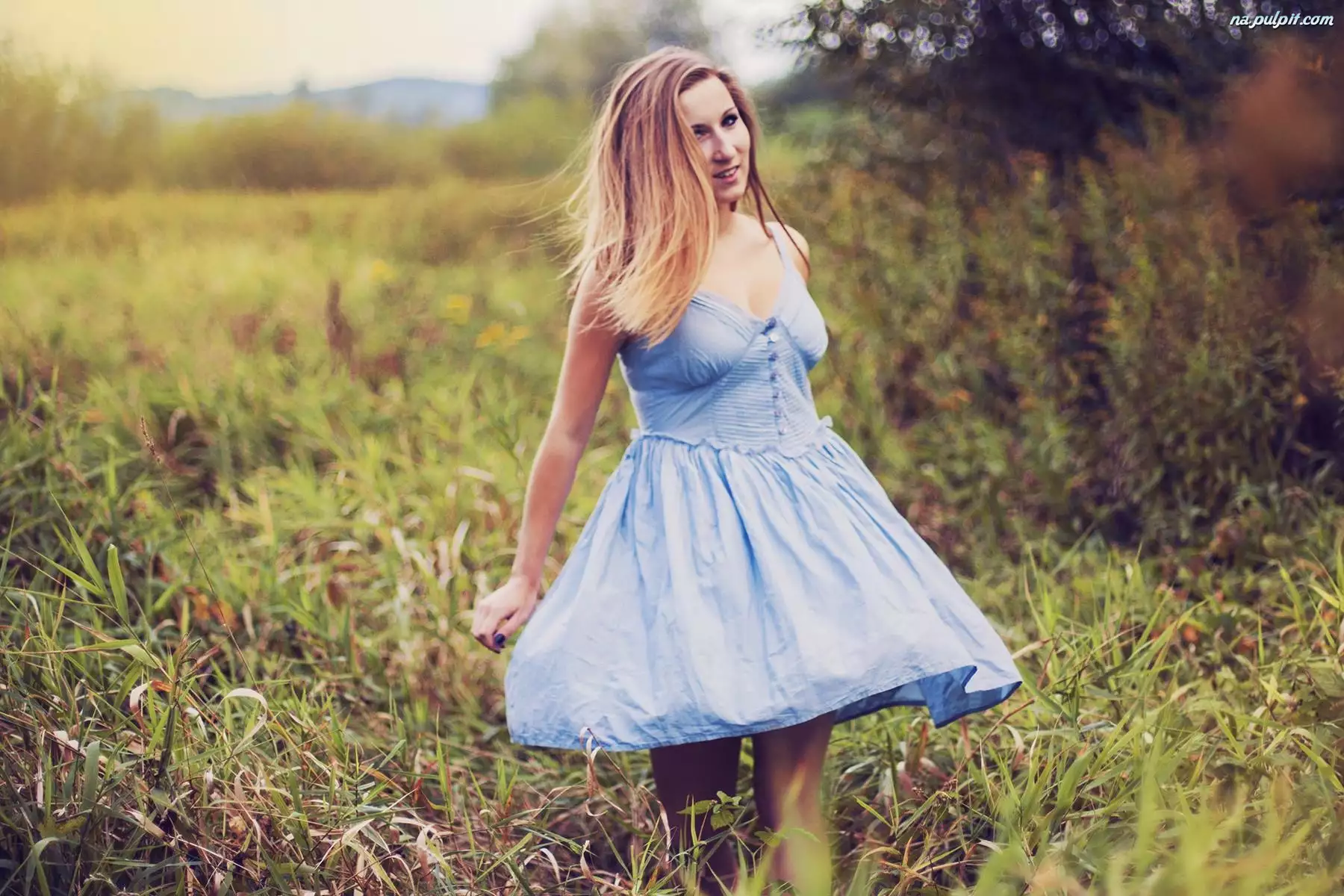 Kobieta, Sukienka, Blondynka, Niebieska