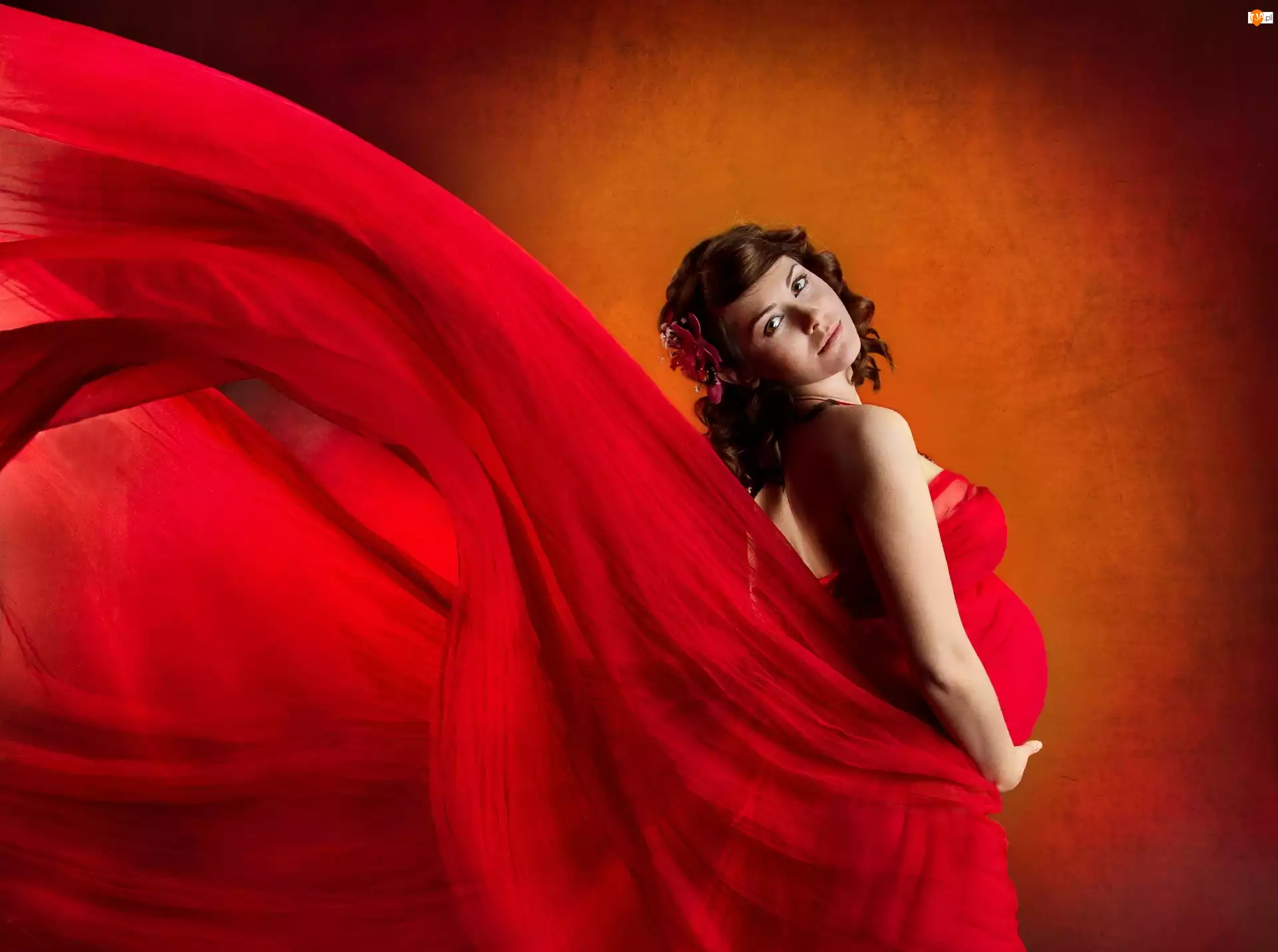 Kobieta, Suknia, Ciąża, Czerwona