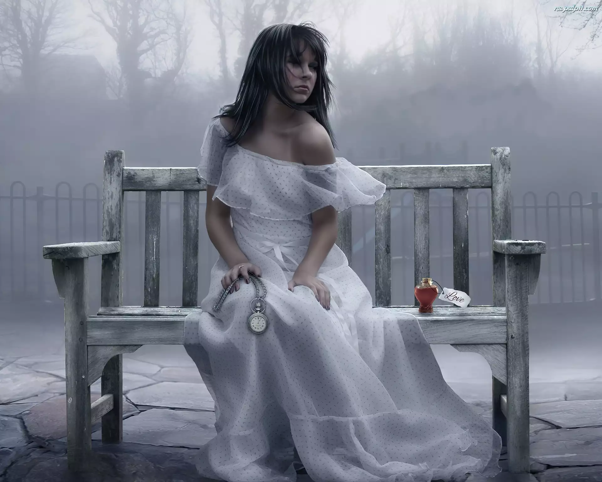 Kobieta, Tęsknota, Ławka, Zegarek