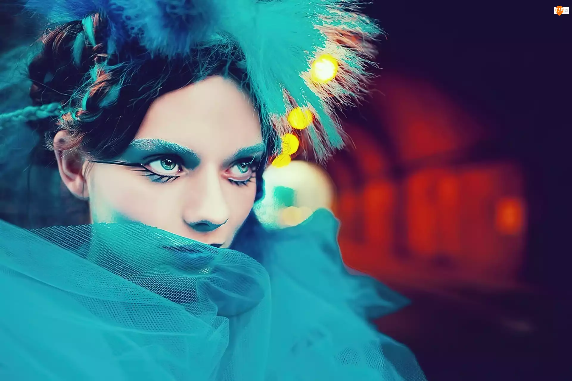 Kobieta, Tunel, Makijaż, Woal