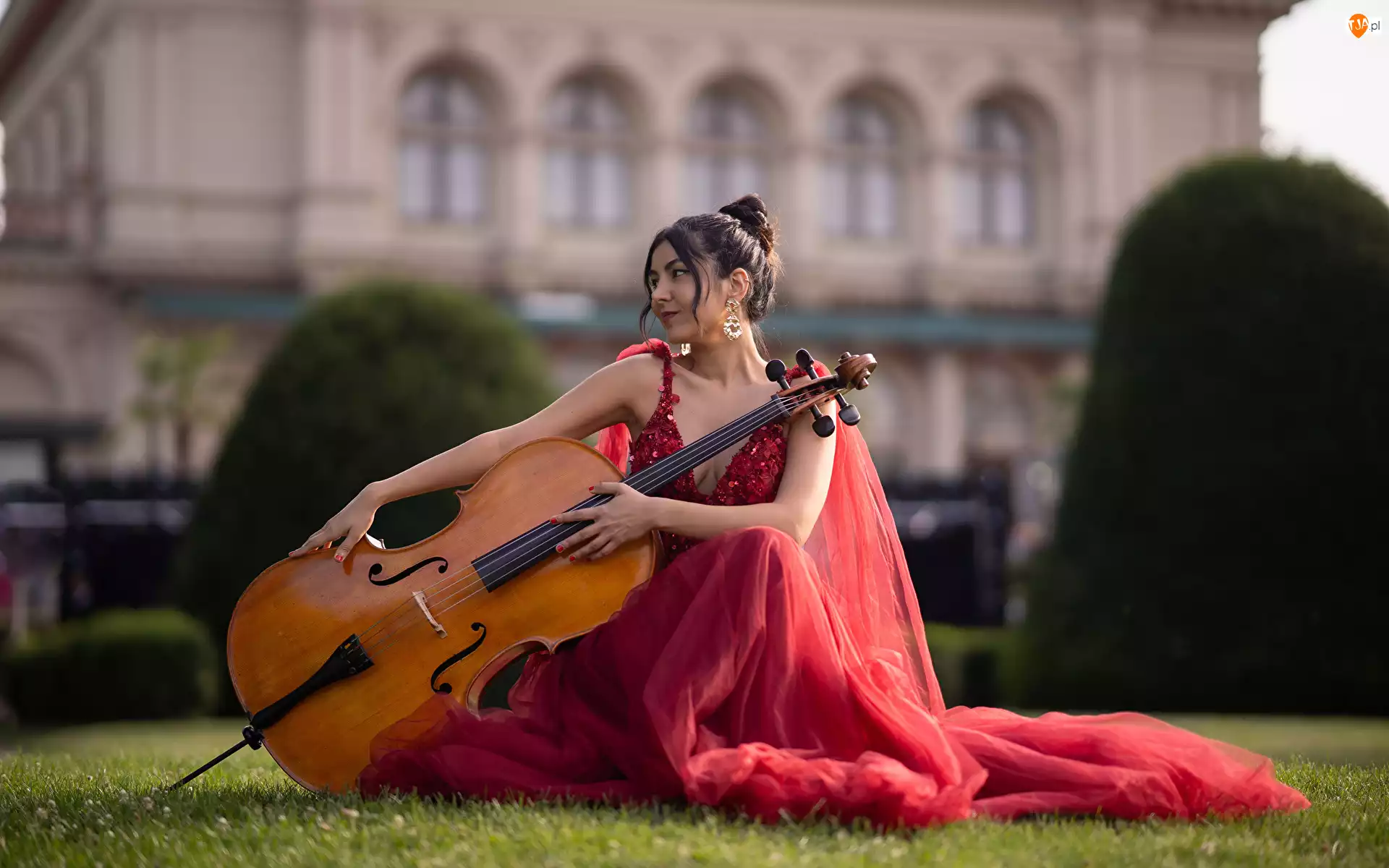 Suknia, Rozmycie, Czerwona, Kobieta, Wiolonczela