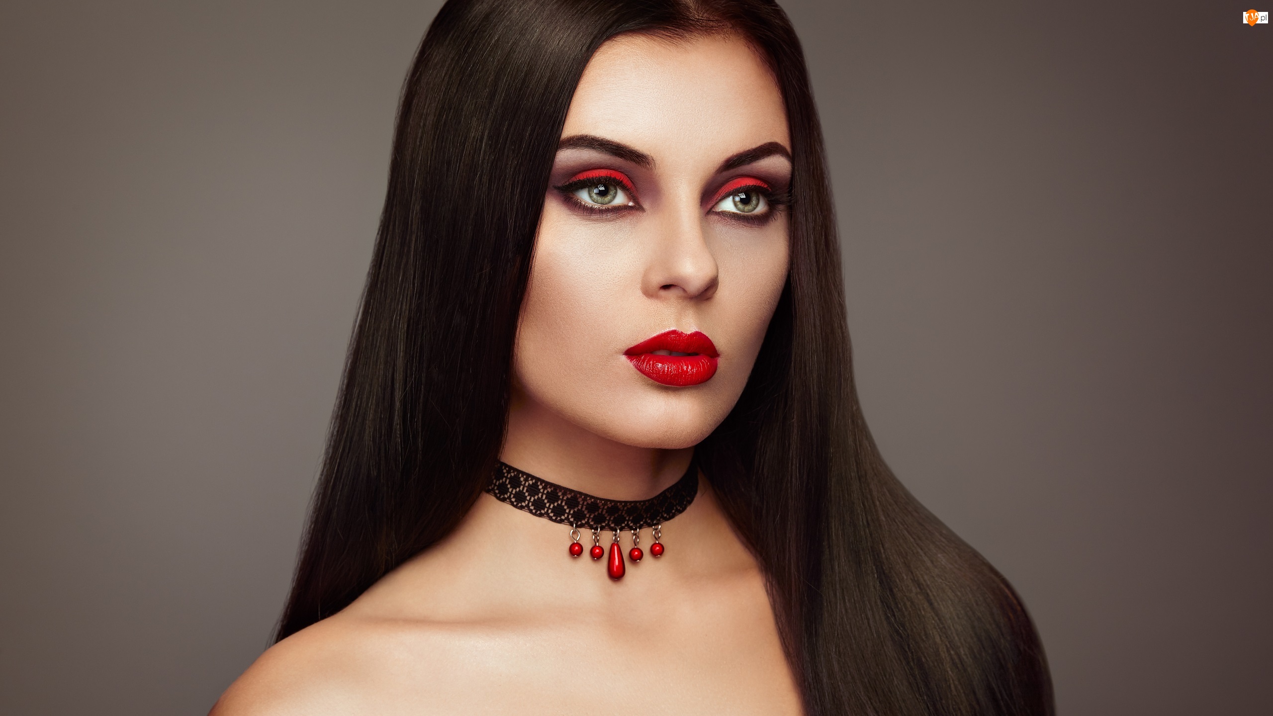 Szatynka, Naszyjnik, Czerwony, Makijaż