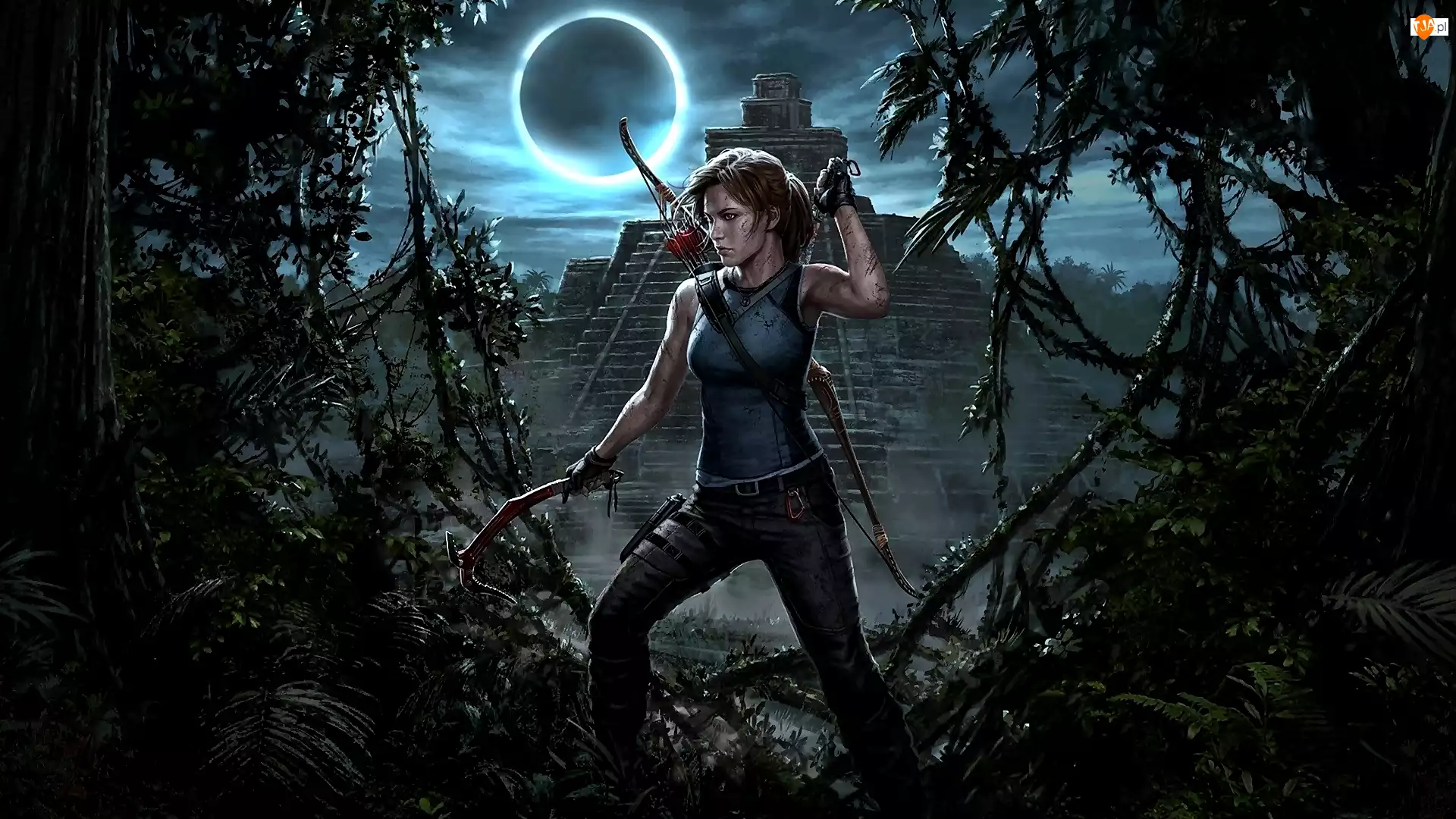 Lara Croft, Księżyc , Shadow of the Tomb Raider, Gra, Noc