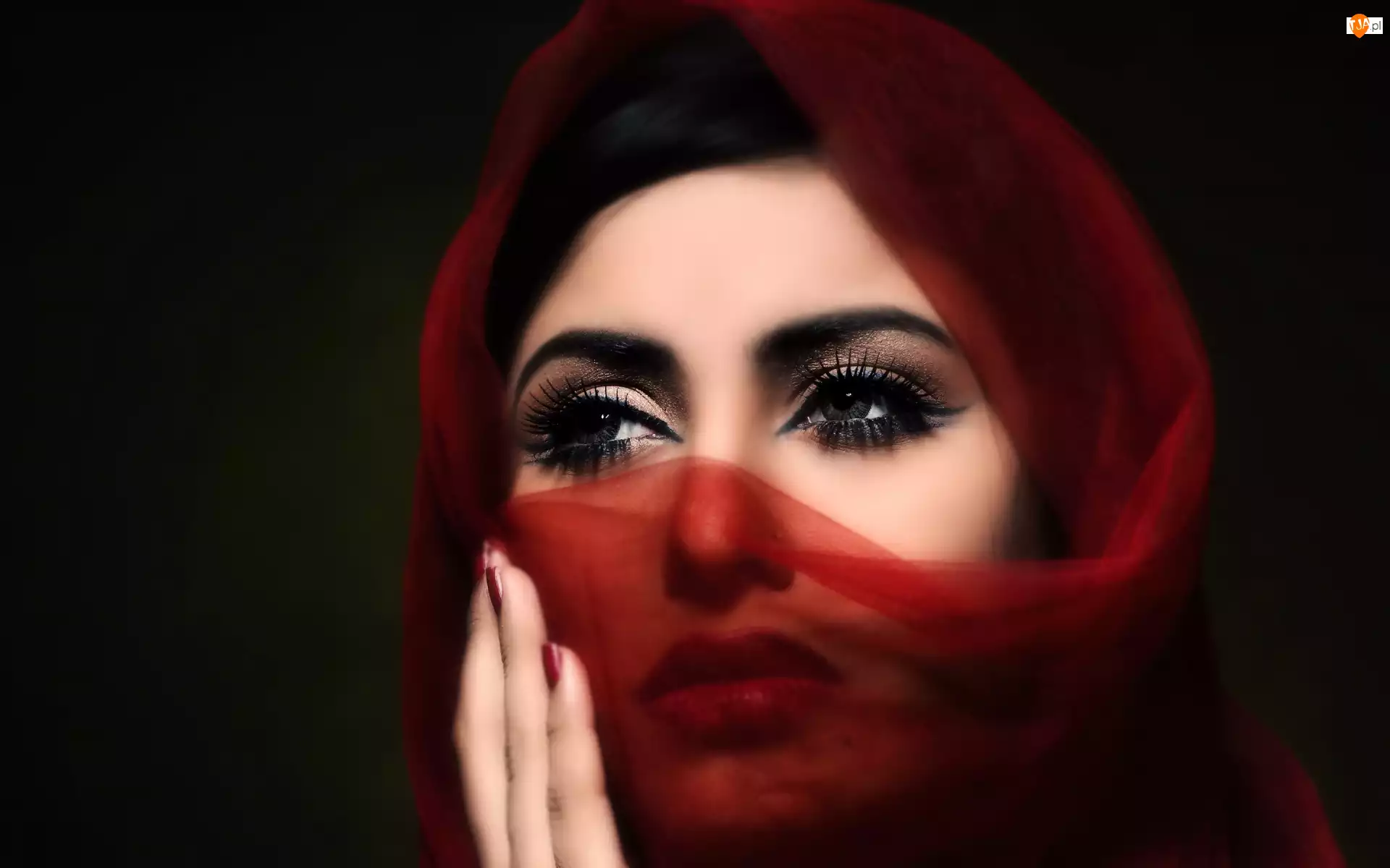 Makijaż, Kobieta, Czerwona, Chusta, Twarz, Woalka