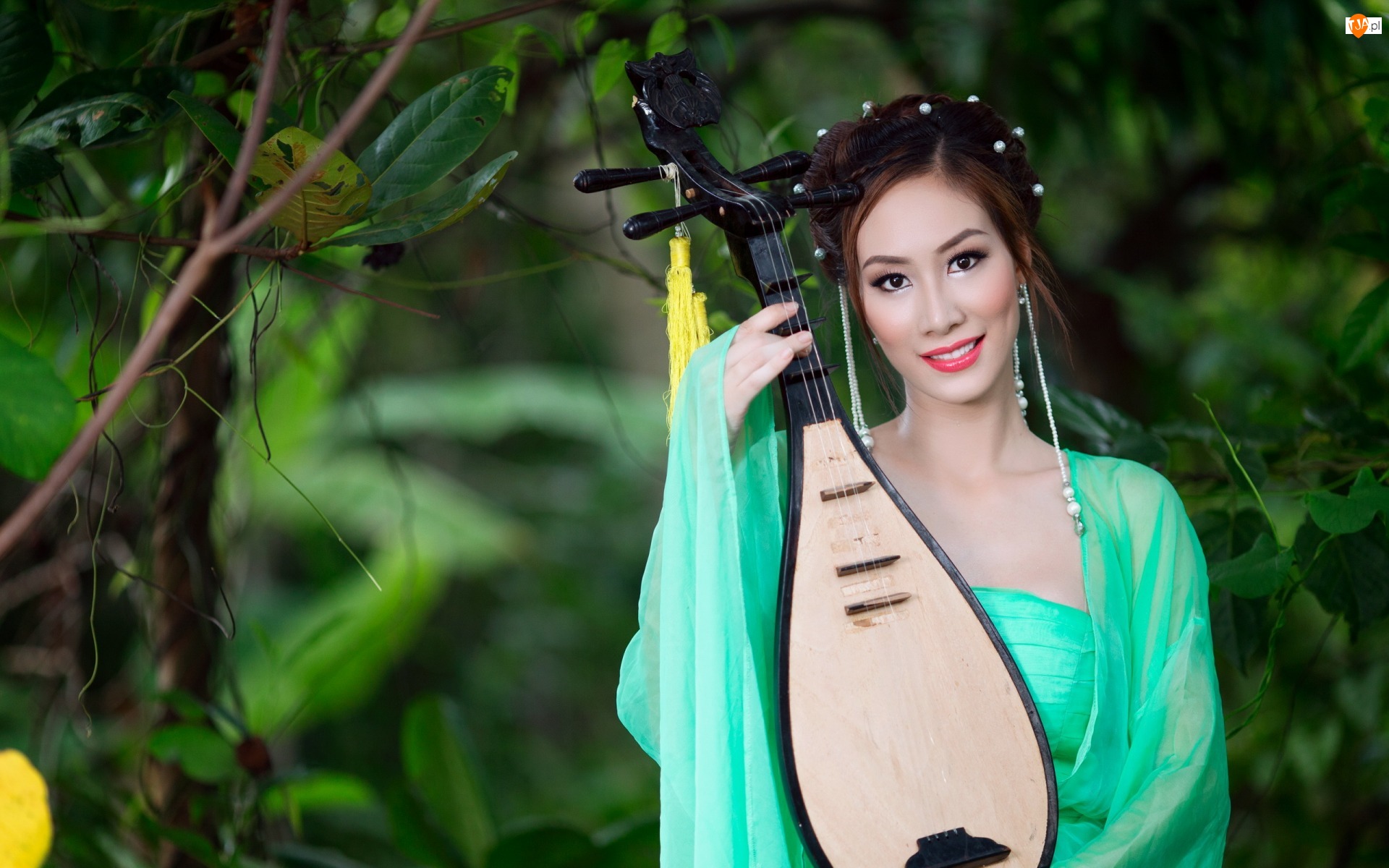 Instrument, Drzewa, Azjatka, Kobieta, Pipa