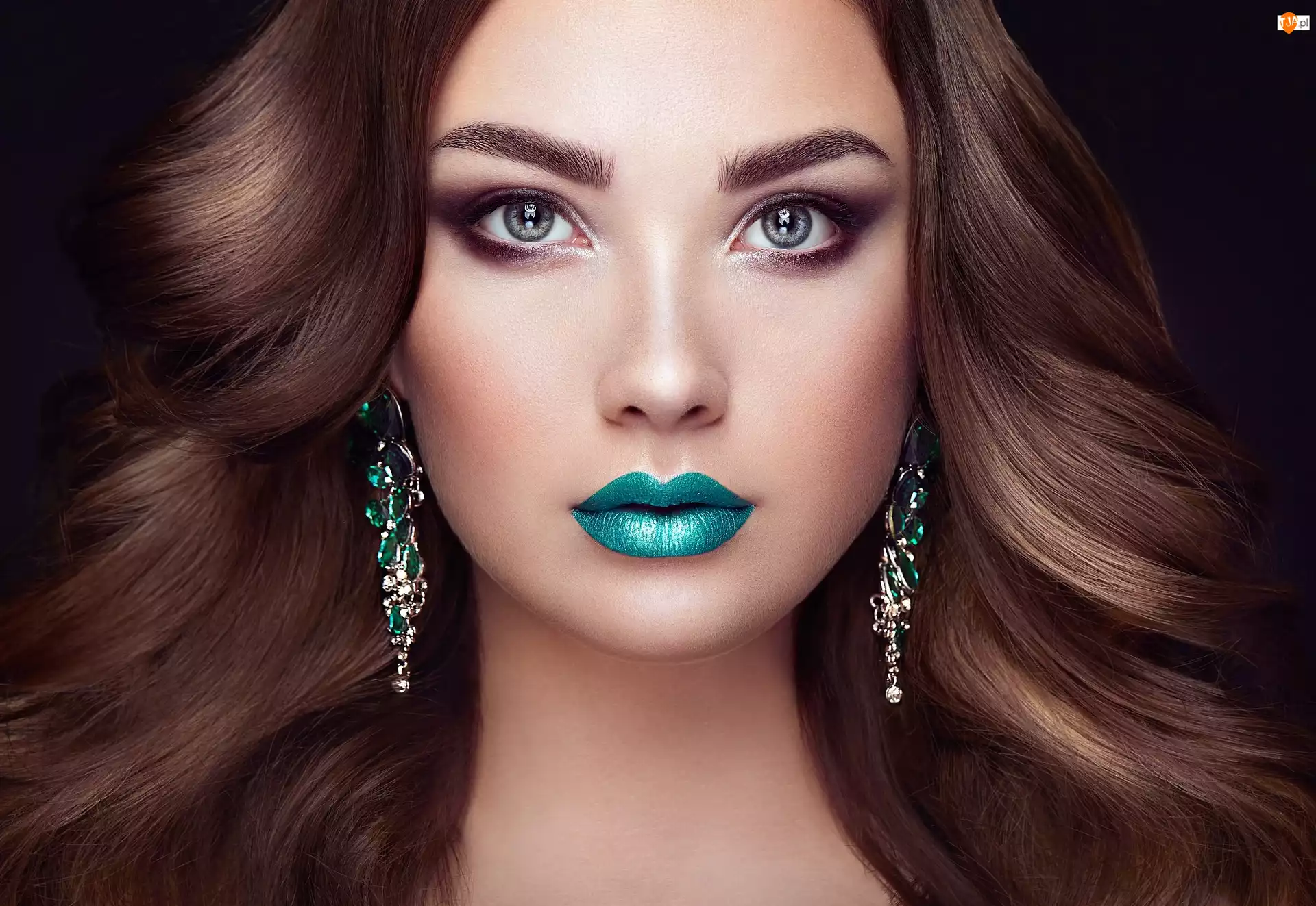 Kobieta, Twarz, Usta, Kolczyki, Turkusowe, Makijaż