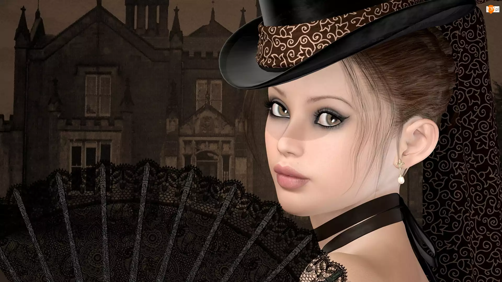 Wachlarz, Kobieta, Dom, 2D, Kapelusz, Grafika