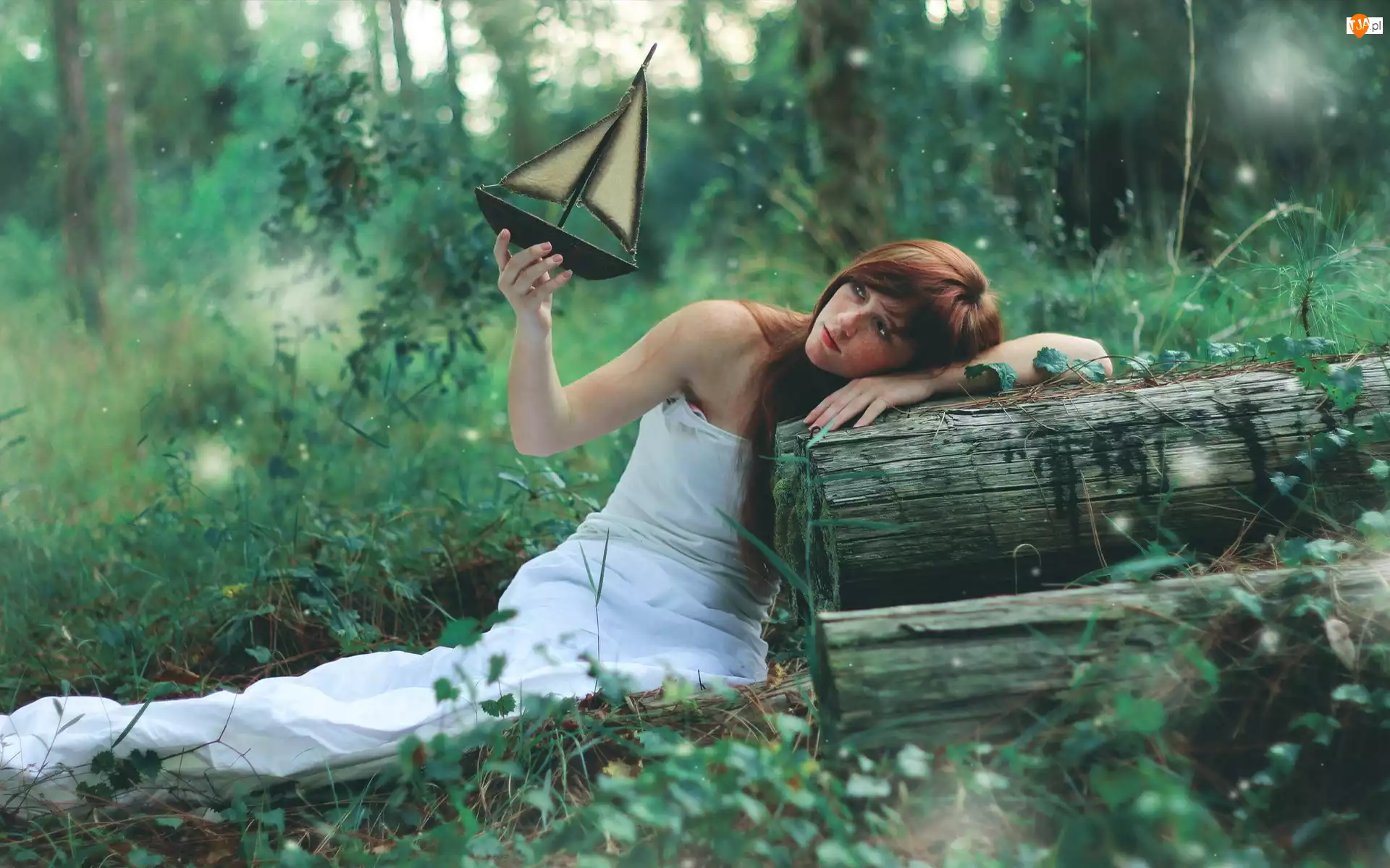 Kobieta, Żaglówka, Trawy, Spojrzenie