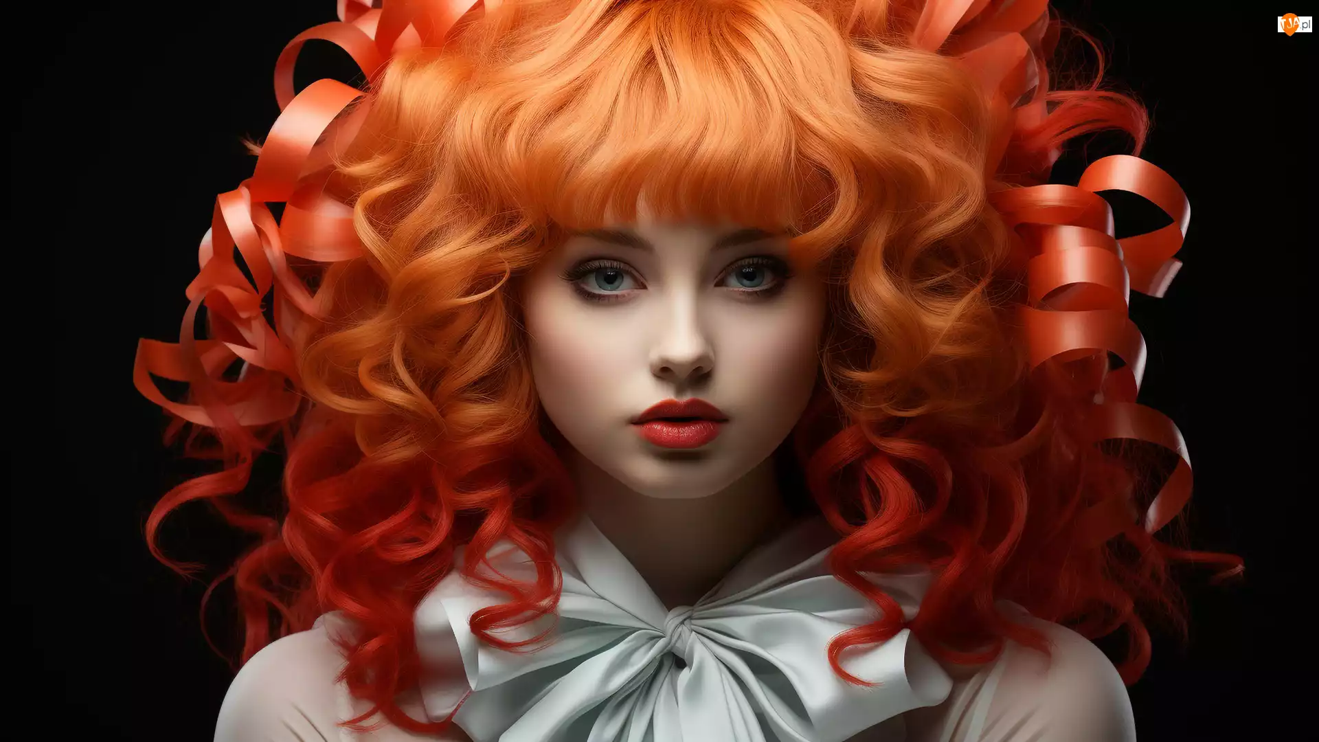 Kobieta ze wstążkami we włosach na ciemnym tle