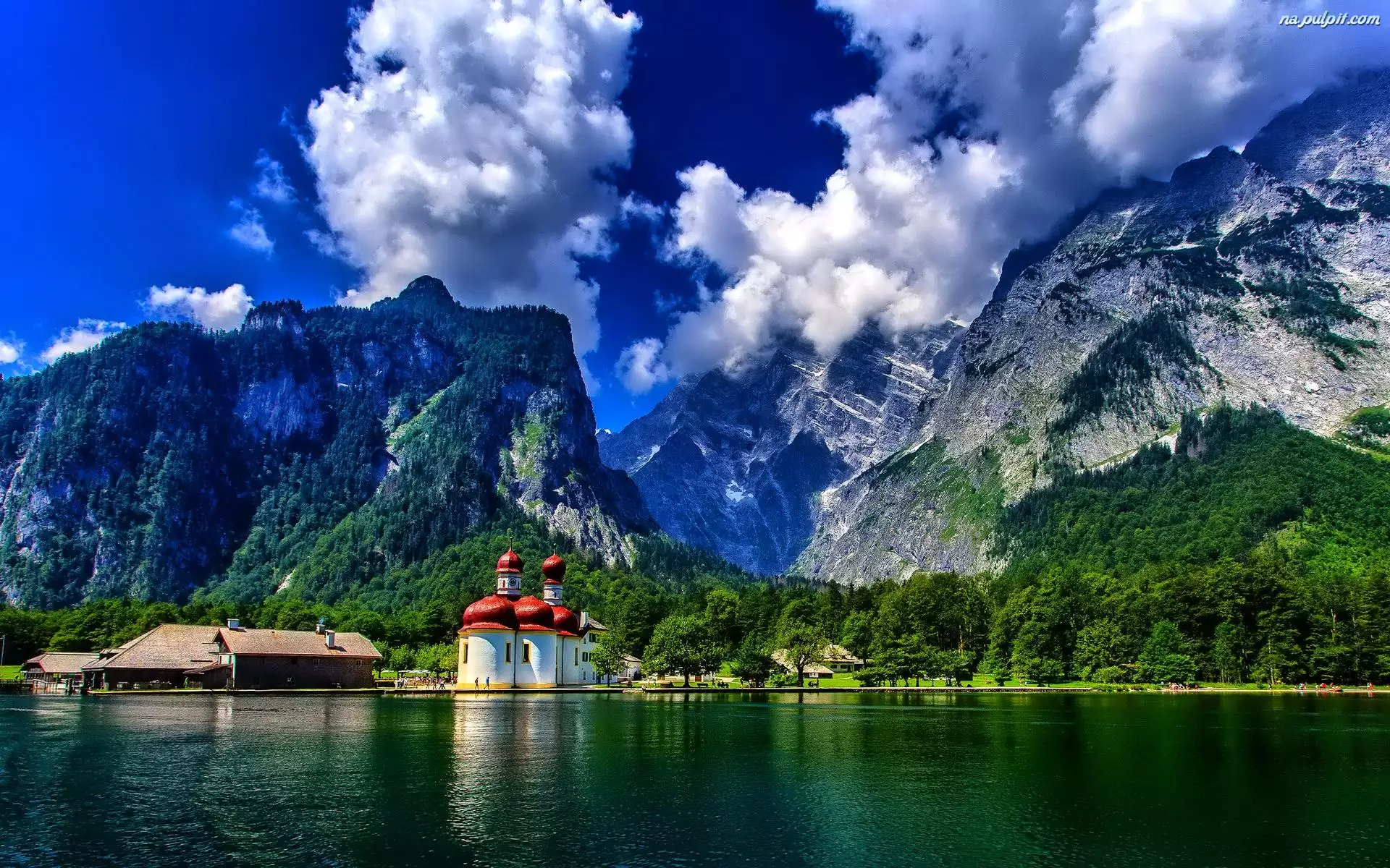 Koenigssee, Św.Bartłomieja, Góry, Bawaria, Jezioro, Kościół