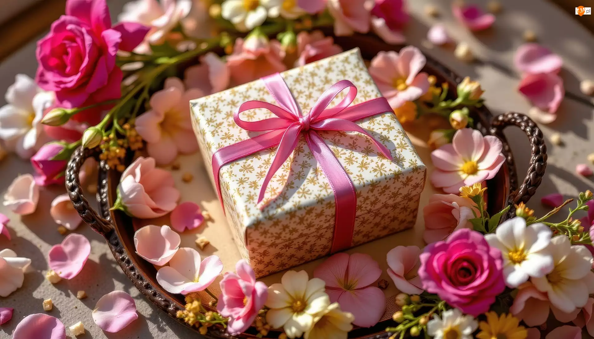 Kokarda, Taca, Prezent, Pudełko, Kwiaty
