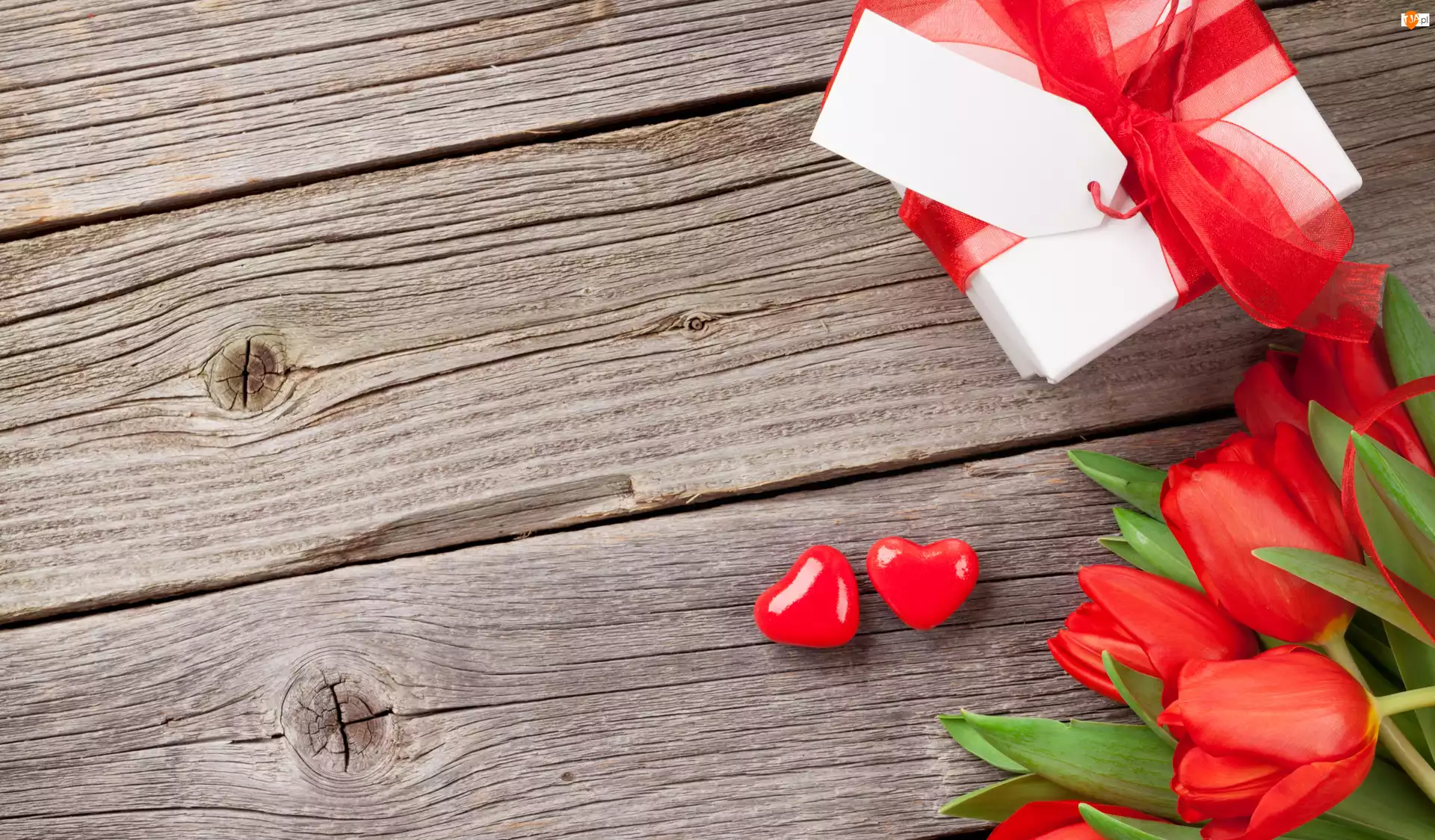 Kokardka, Deski, Serca, Tulipany, Prezenty