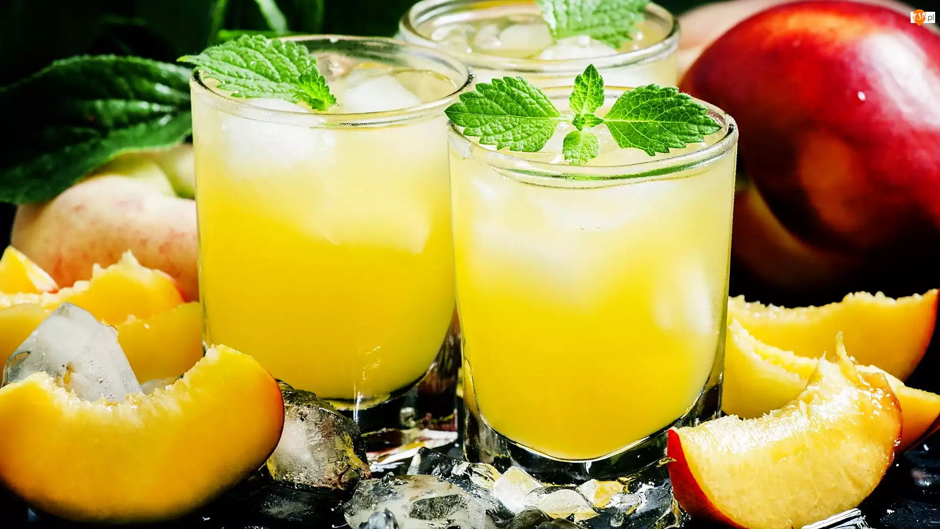 Nektarynki, Szklanki, Napój, Kostki lodu