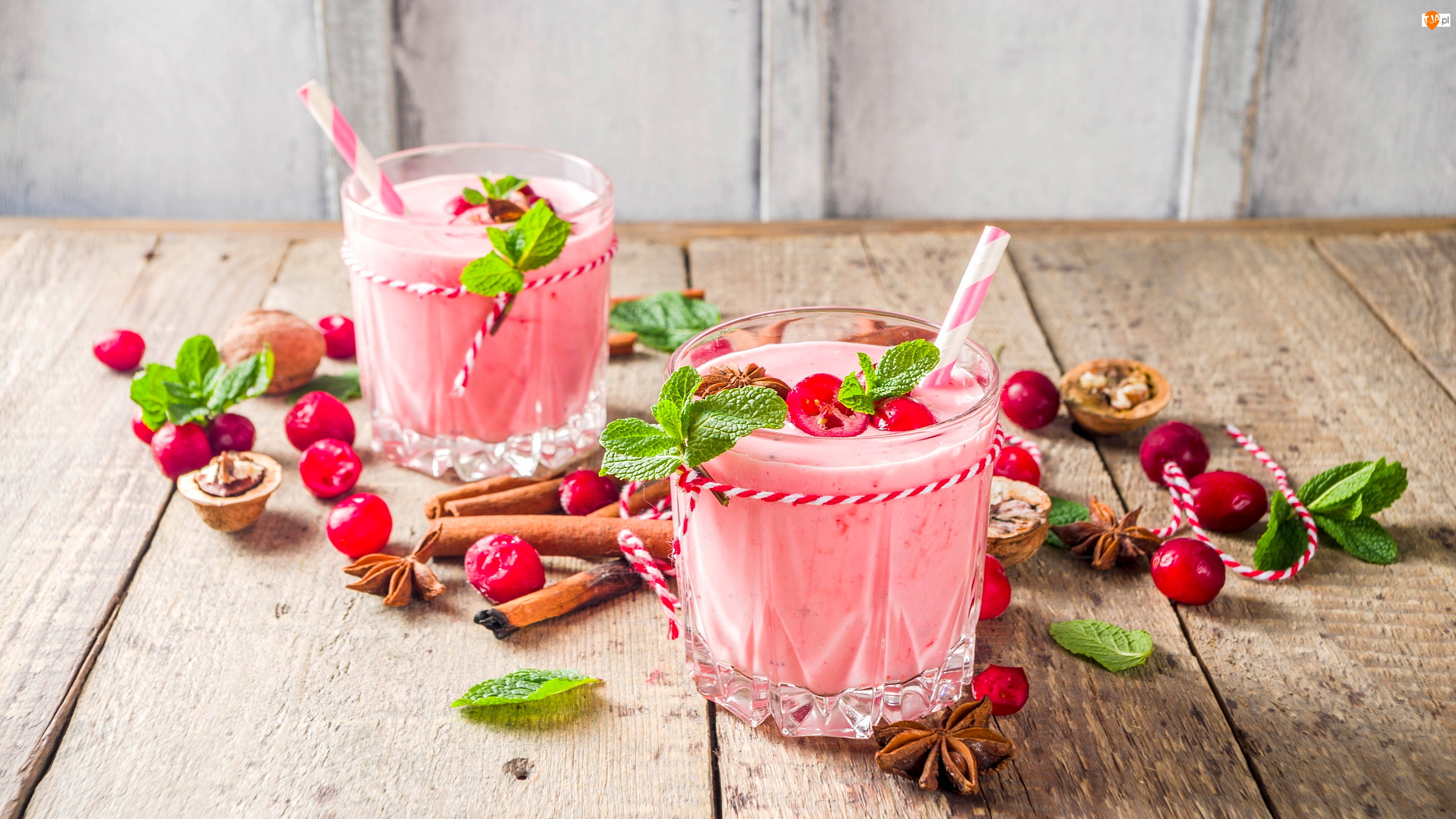 Szklanki, Dwie, Żurawina, Mięta, Koktajl, Cynamon