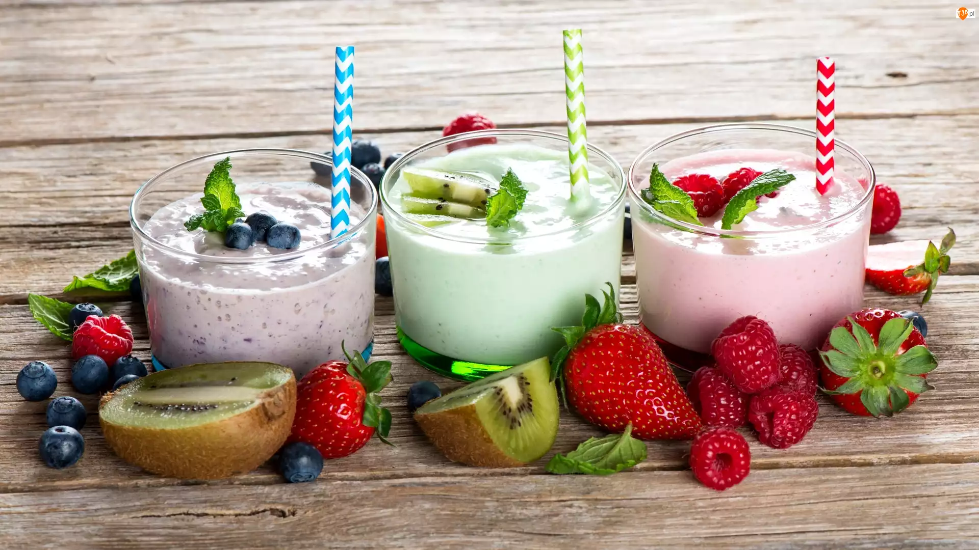 Kiwi, Koktajle, Maliny, Słomki, Truskawki, Jagody