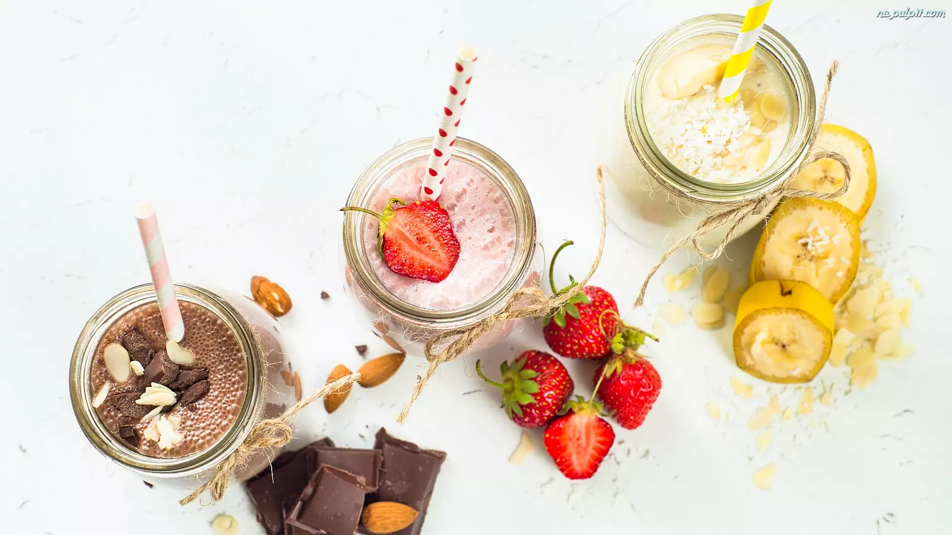 Koktajle, Owocowe, Banany, Czekolada, Słoiki, Truskawki