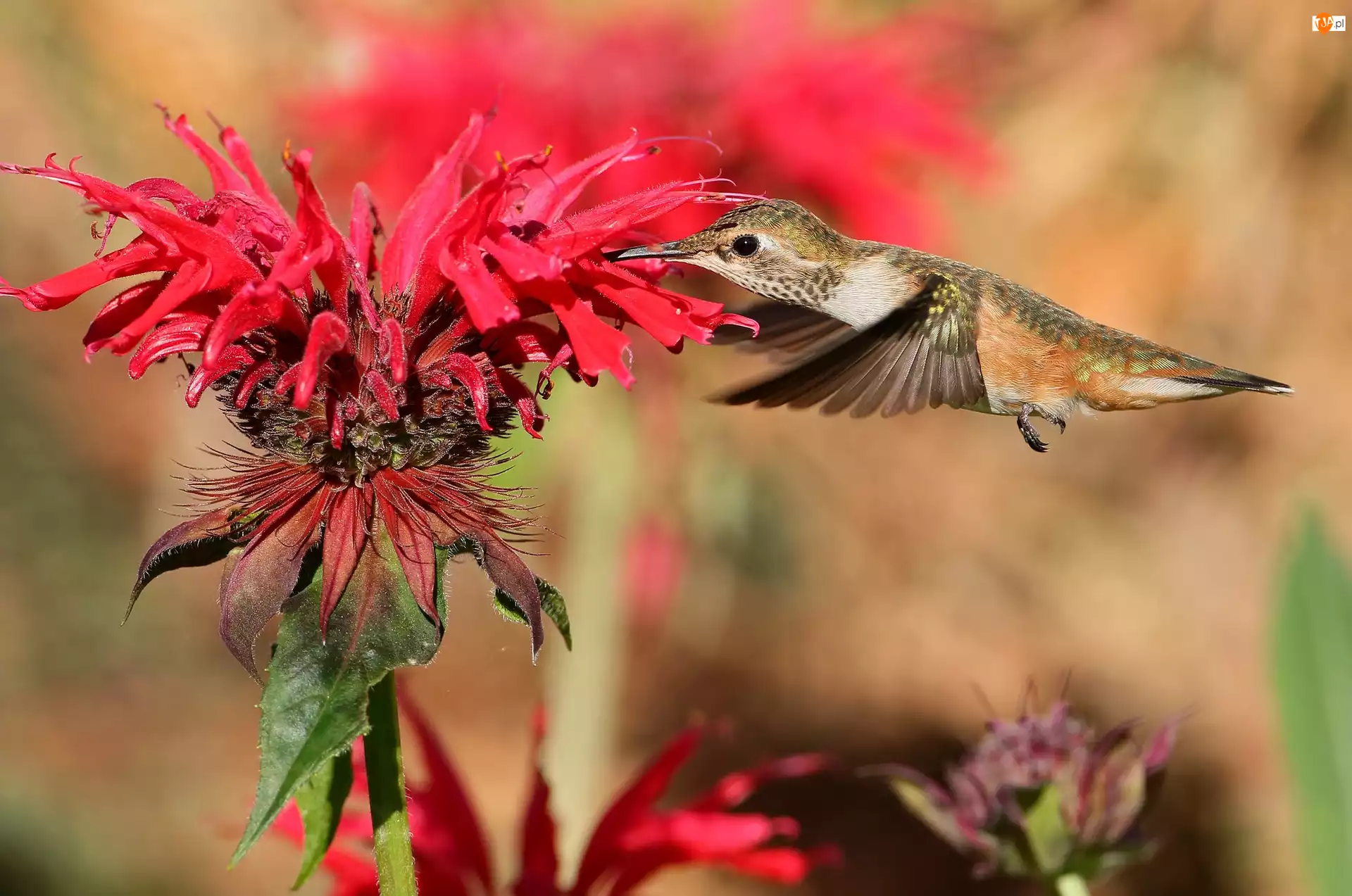 Koliber przyfrunął na czerwony kwiat