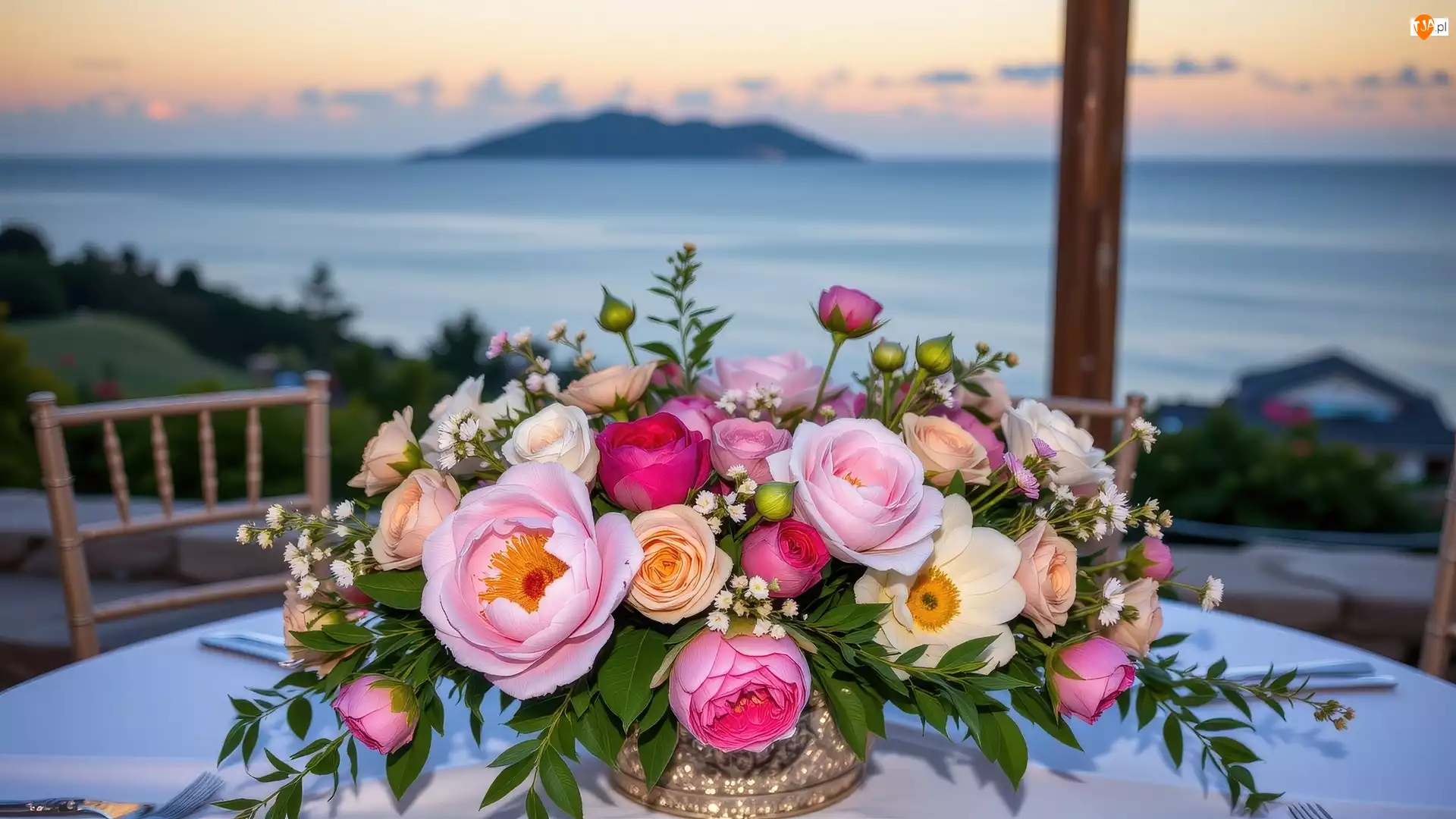 Kolorowe, Bukiet, Róże, Wazon, Kwiaty, Stół