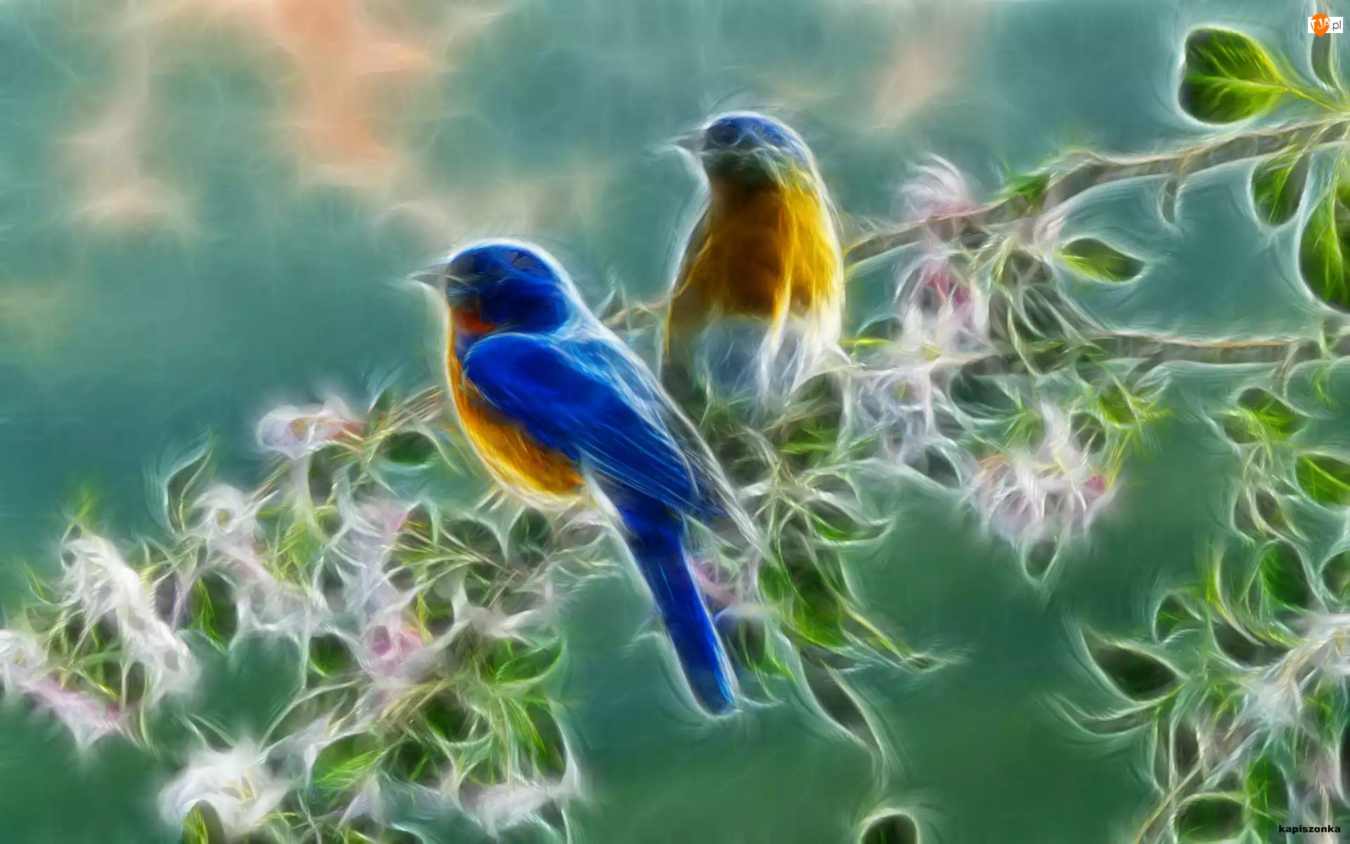 Kolorowe, Drzewa, Ptaki, Łodygi