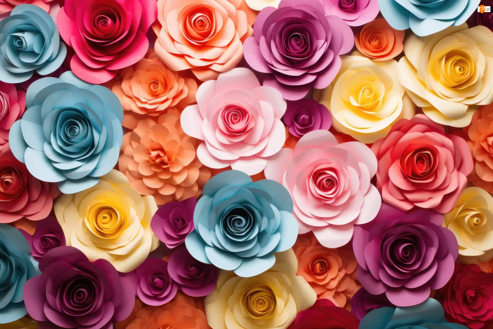 Kolorowe, Grafika, Papierowe, Kwiaty