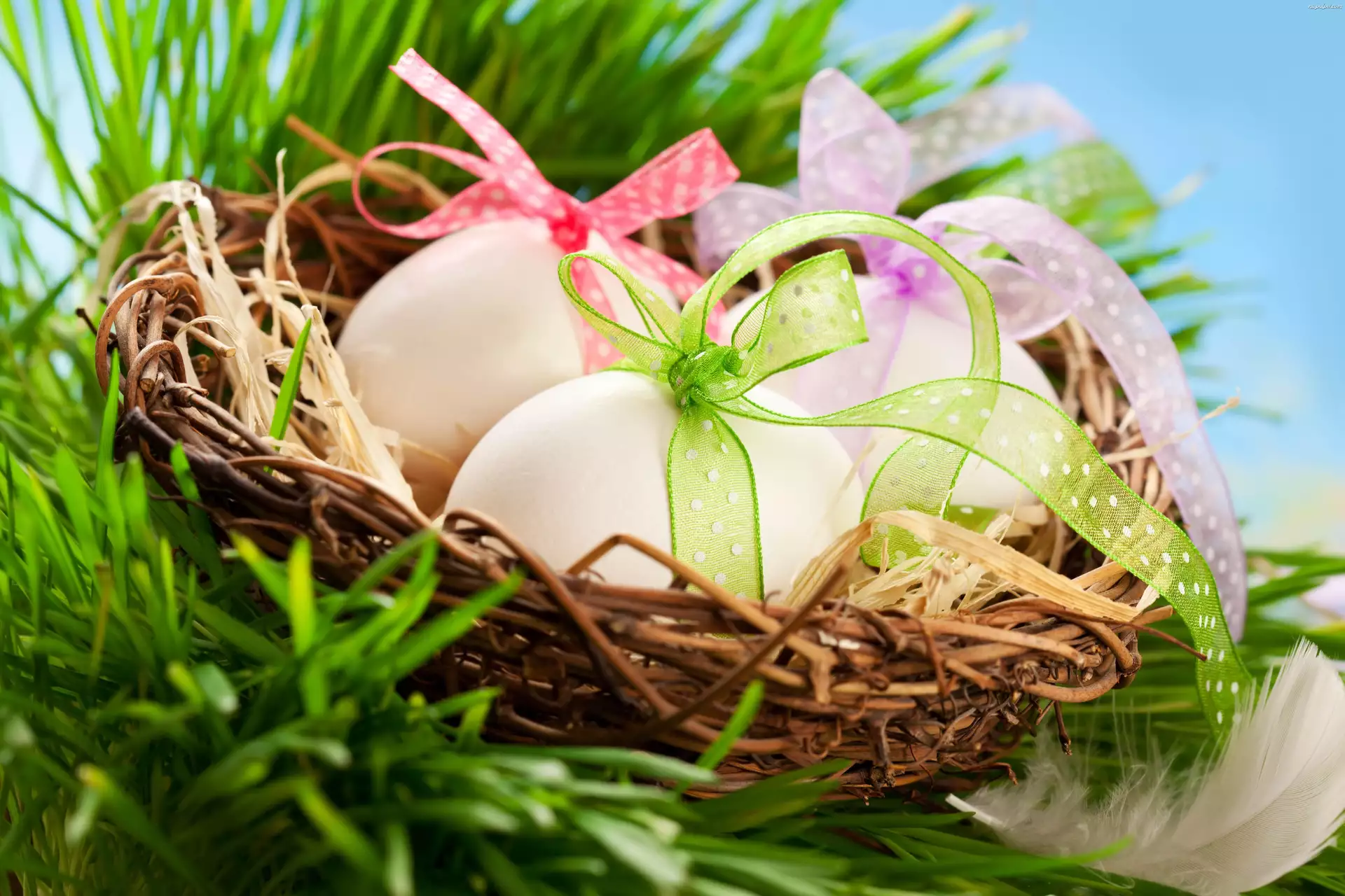 Kolorowe, Jajka, Koszyk, Wielkanocna, Wstążki, D