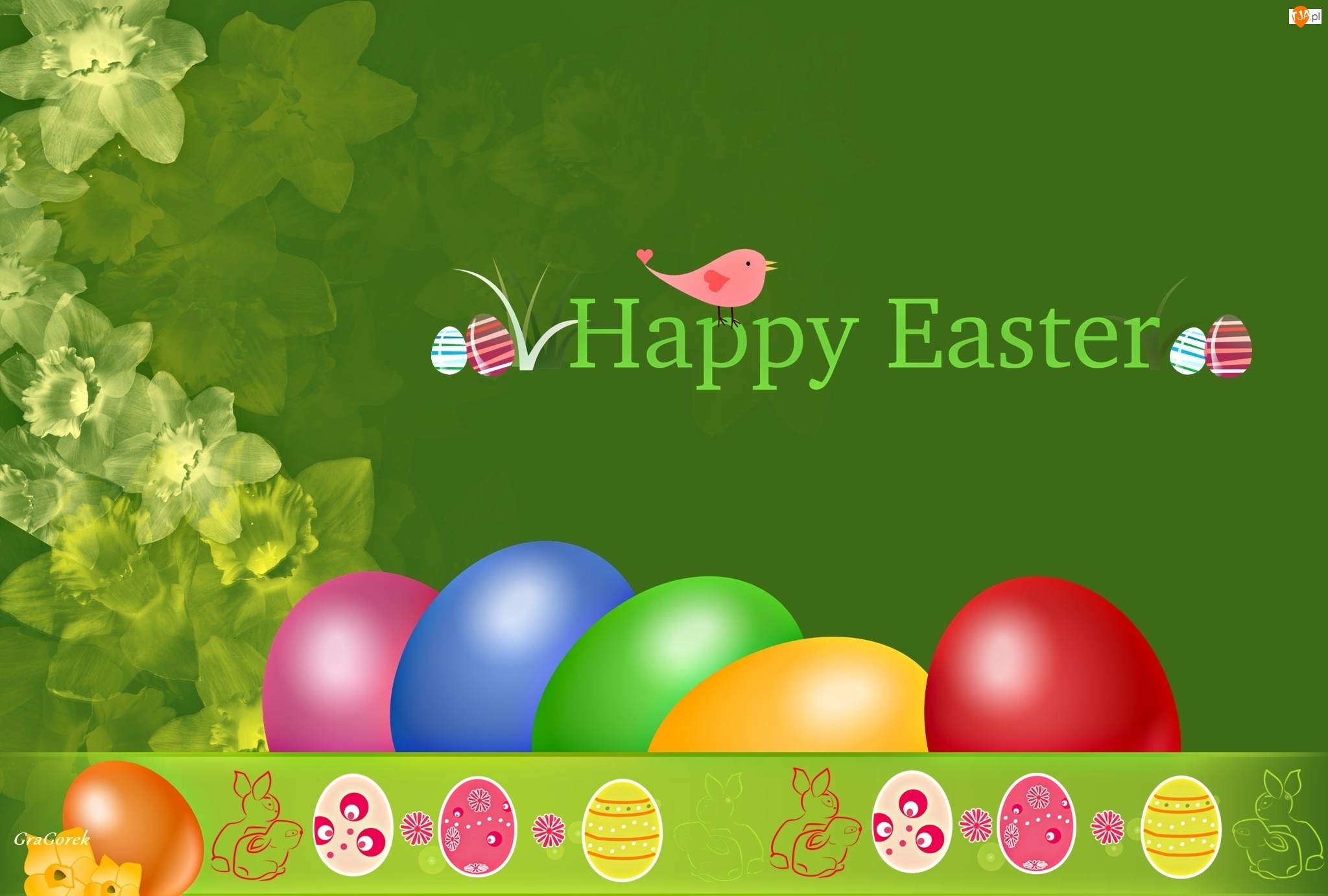 Kolorowe Jajka, Wielkanoc, Żonkile