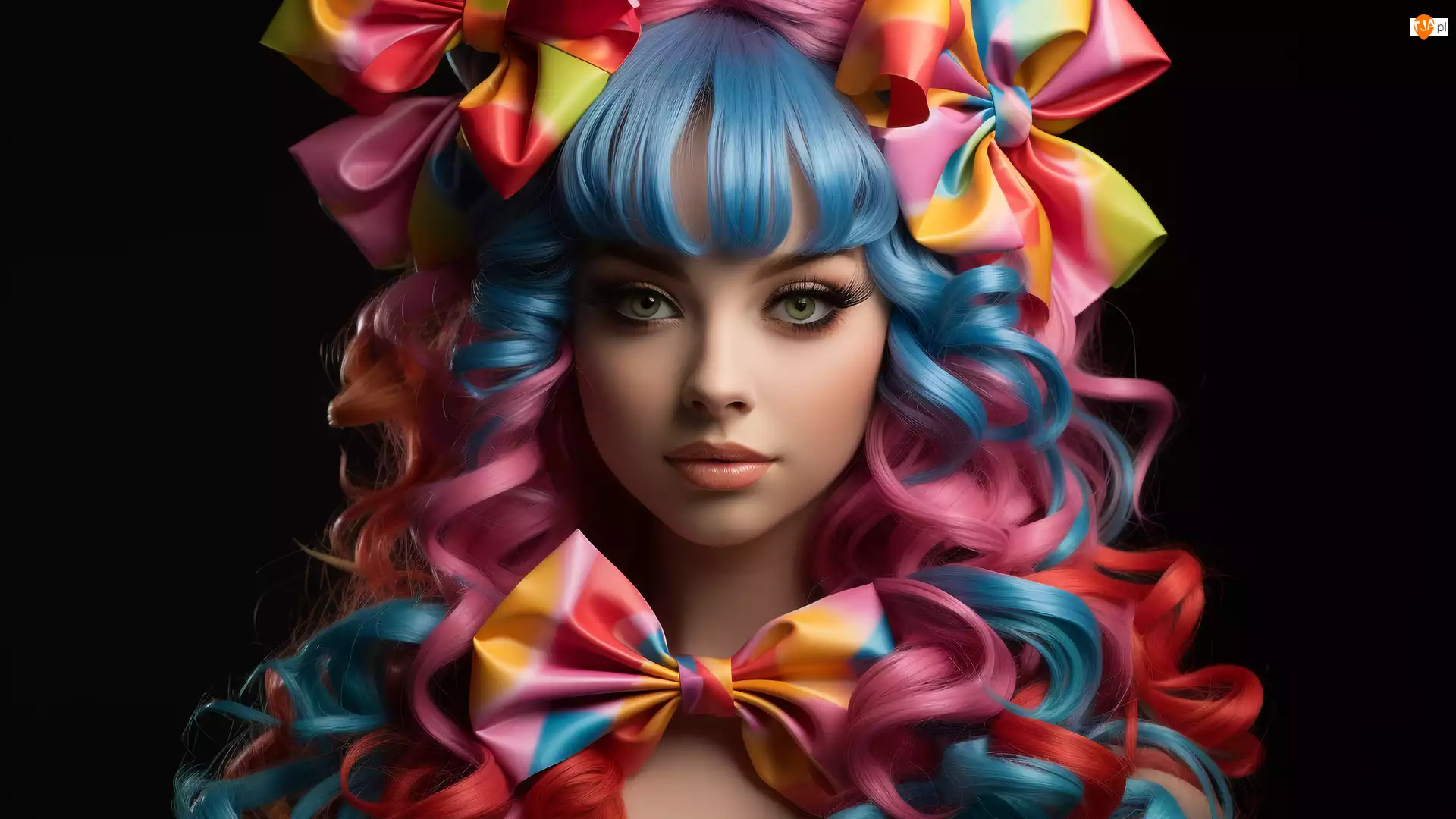 Kolorowe, Kobieta, Kokardy, Tło, Włosy, Ciemne