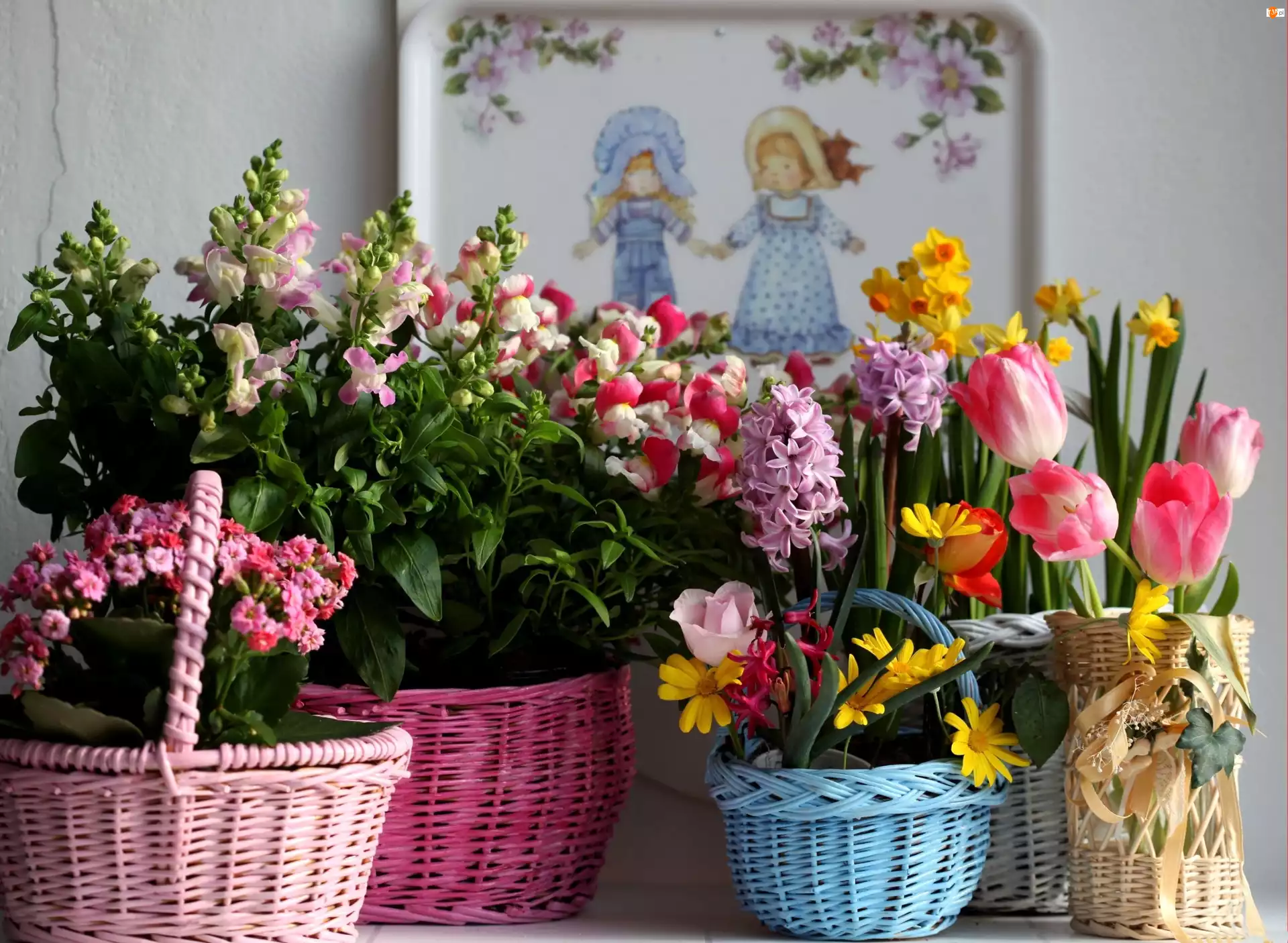 Kwiatów, Kolorowe, Kosze, Bukiety