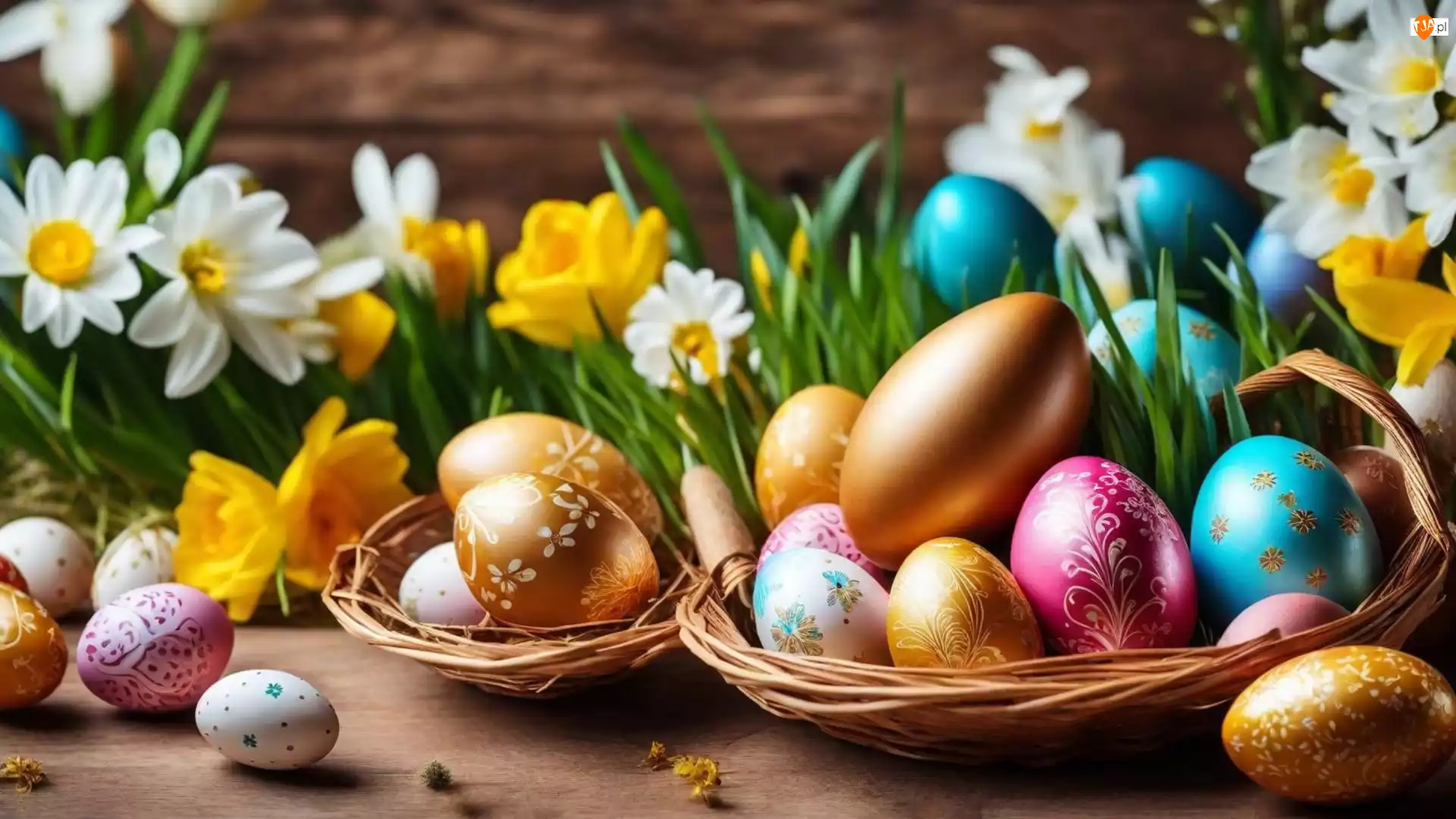 Kwiaty, Wielkanoc, Pisanki, Koszyki