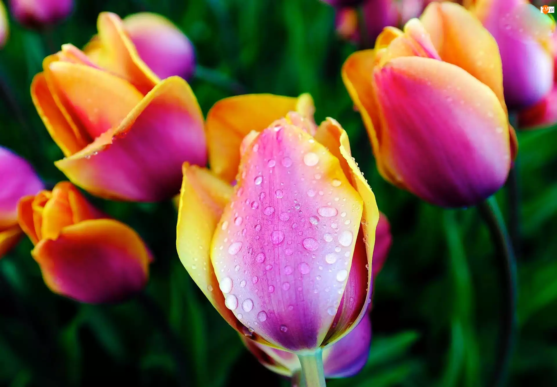 Rosy, Kolorowe, Tulipany, Krople