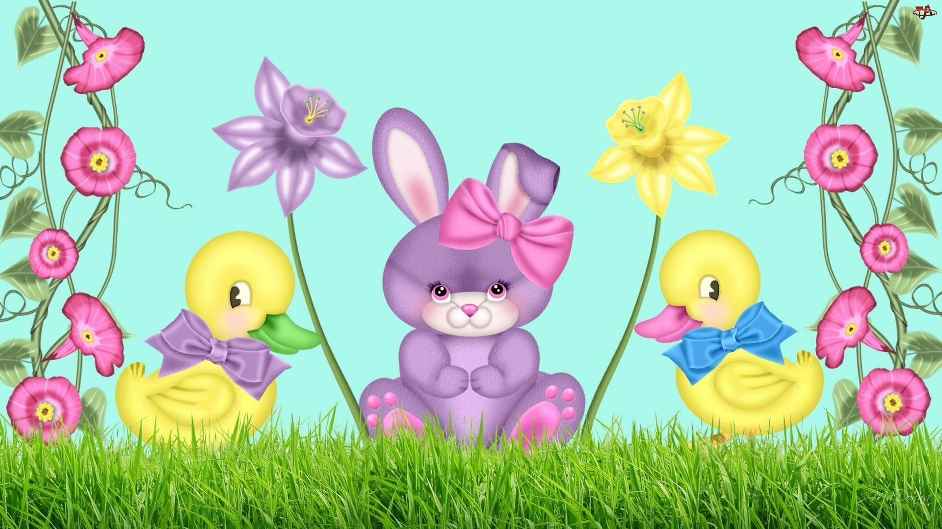 Kolorowe, Trawka, Wielkanoc, Zajączek, Kurczaczki, Kwiatki
