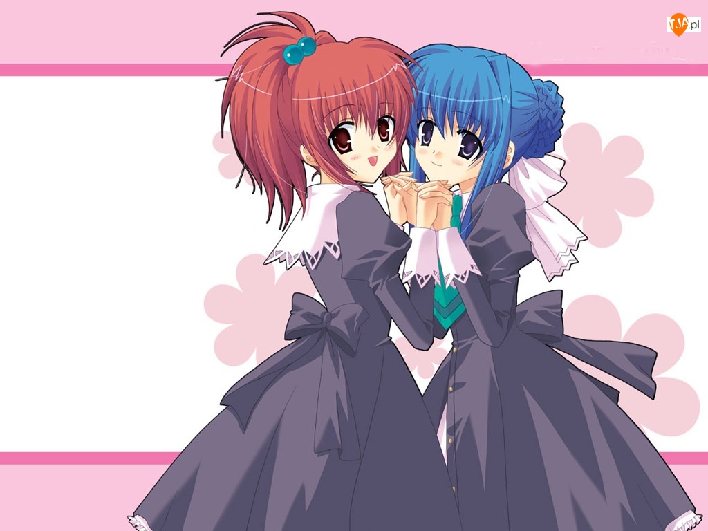 kolorowe włosy, Strawberry Panic, grafitowe suknie