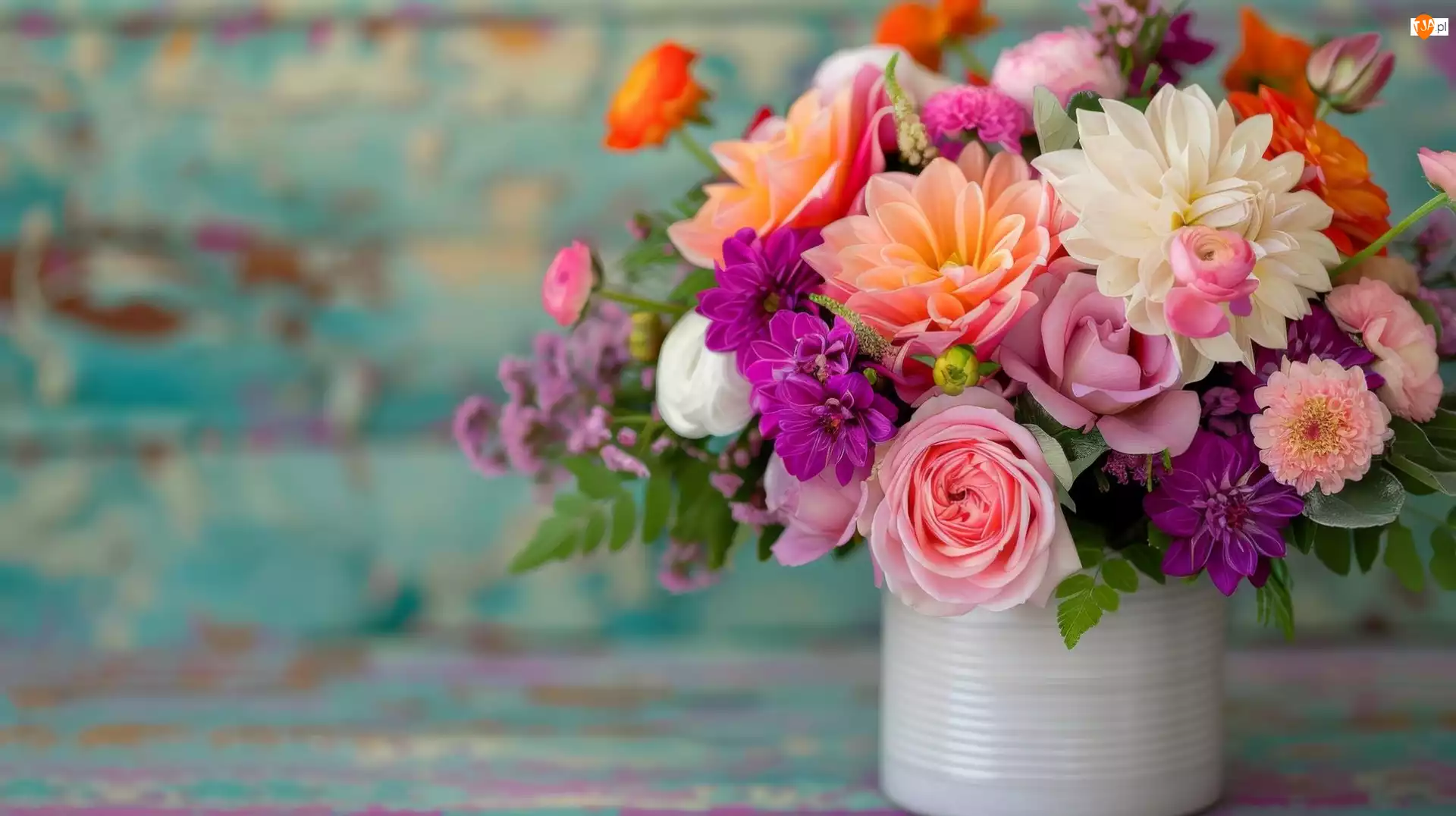 Bukiet, Tło, Kolorowe, Kwiaty, Wazon