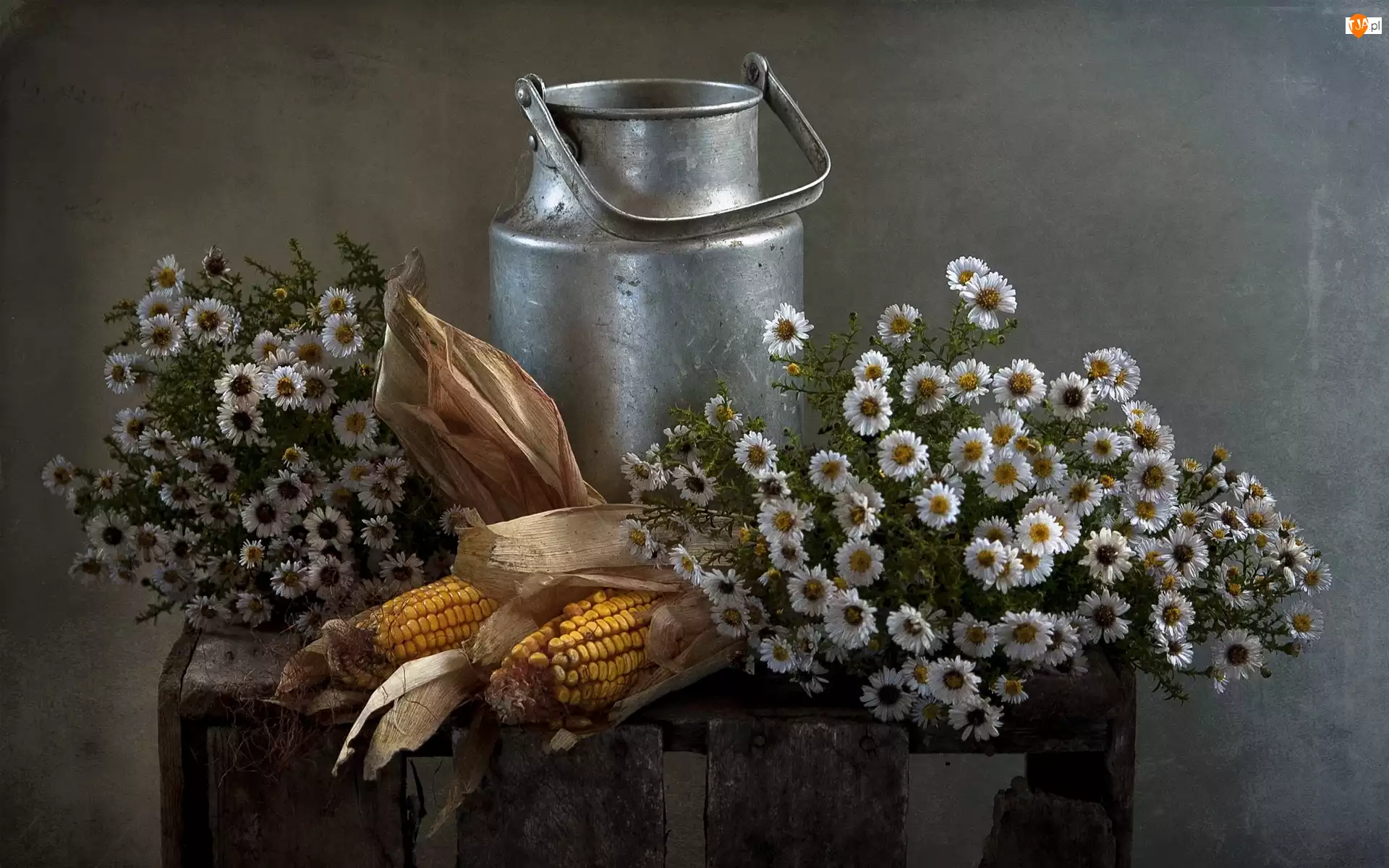 Kompozycja, Bańka, Kwiaty, Kukurydza
