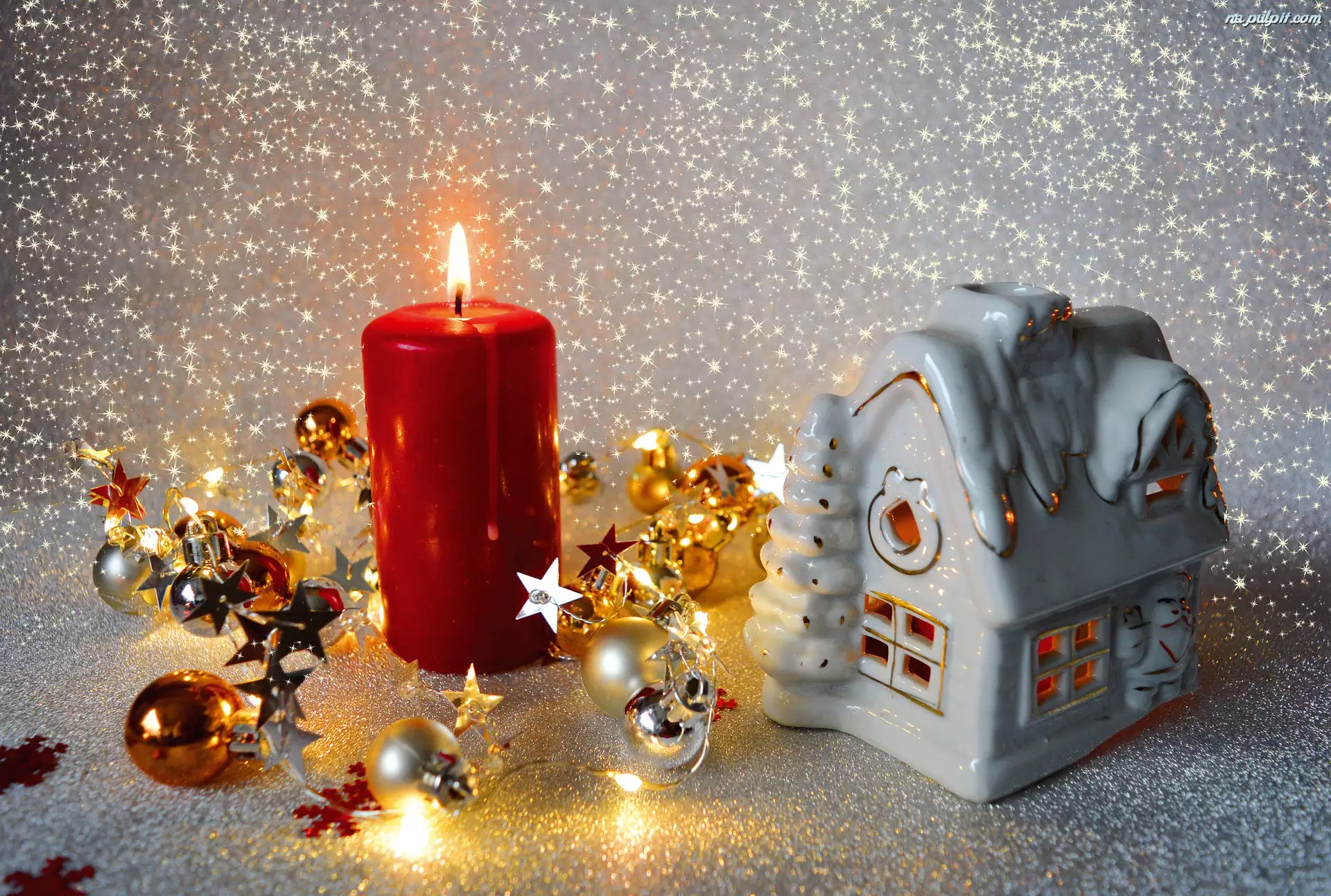 Lampion, Bombki, Domek, Boże Narodzenie, Świeca