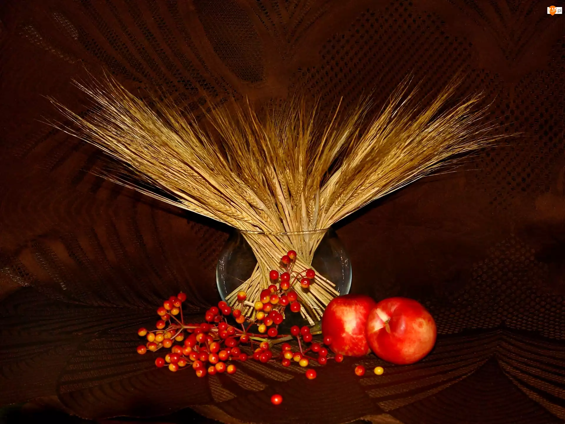 Kompozycja, Kłosy, Flakon, Zboże, Jabłka