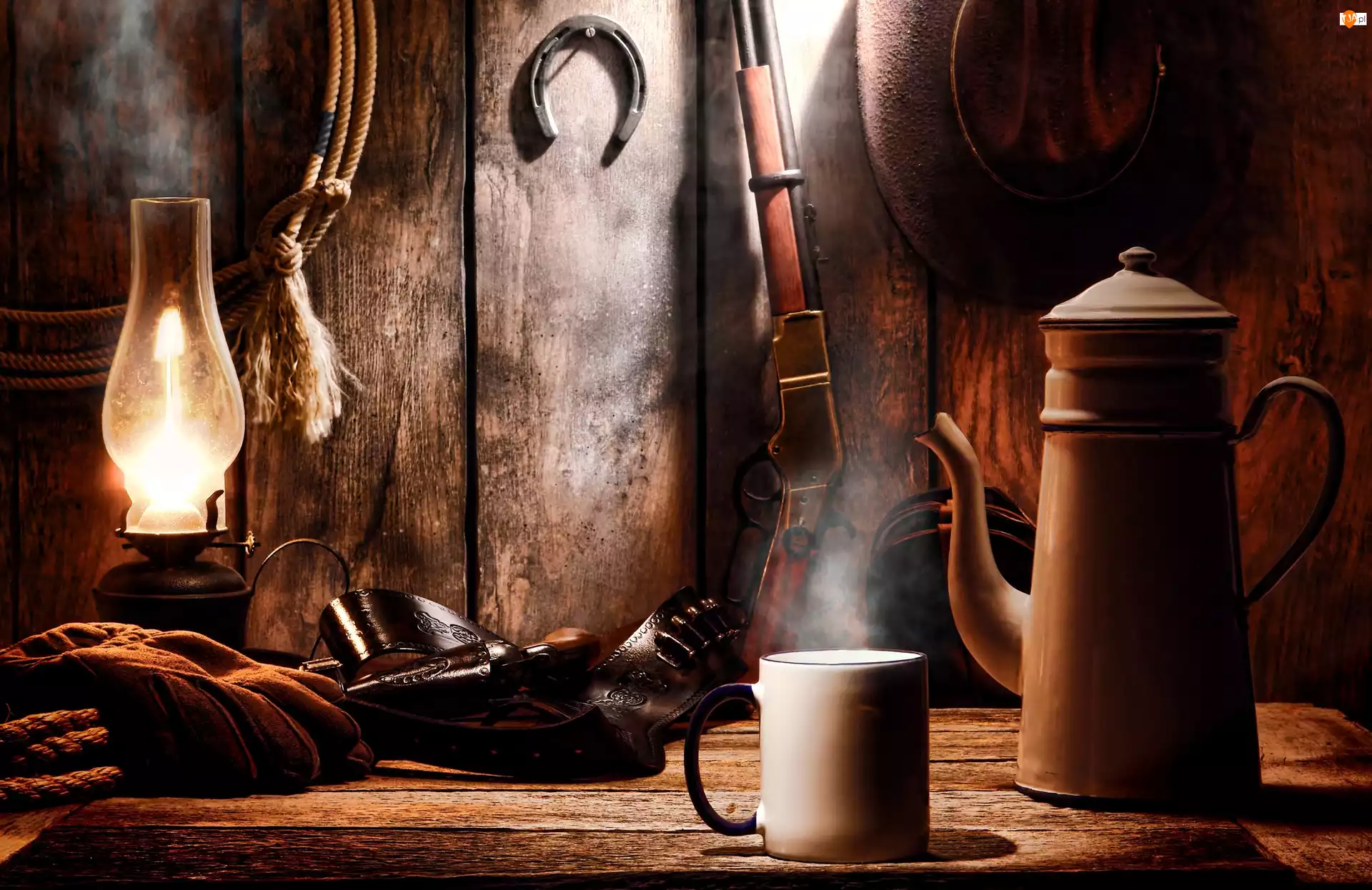 Winchester, Kompozycja, Western, Dzbanek, Rewolwer, Lampa