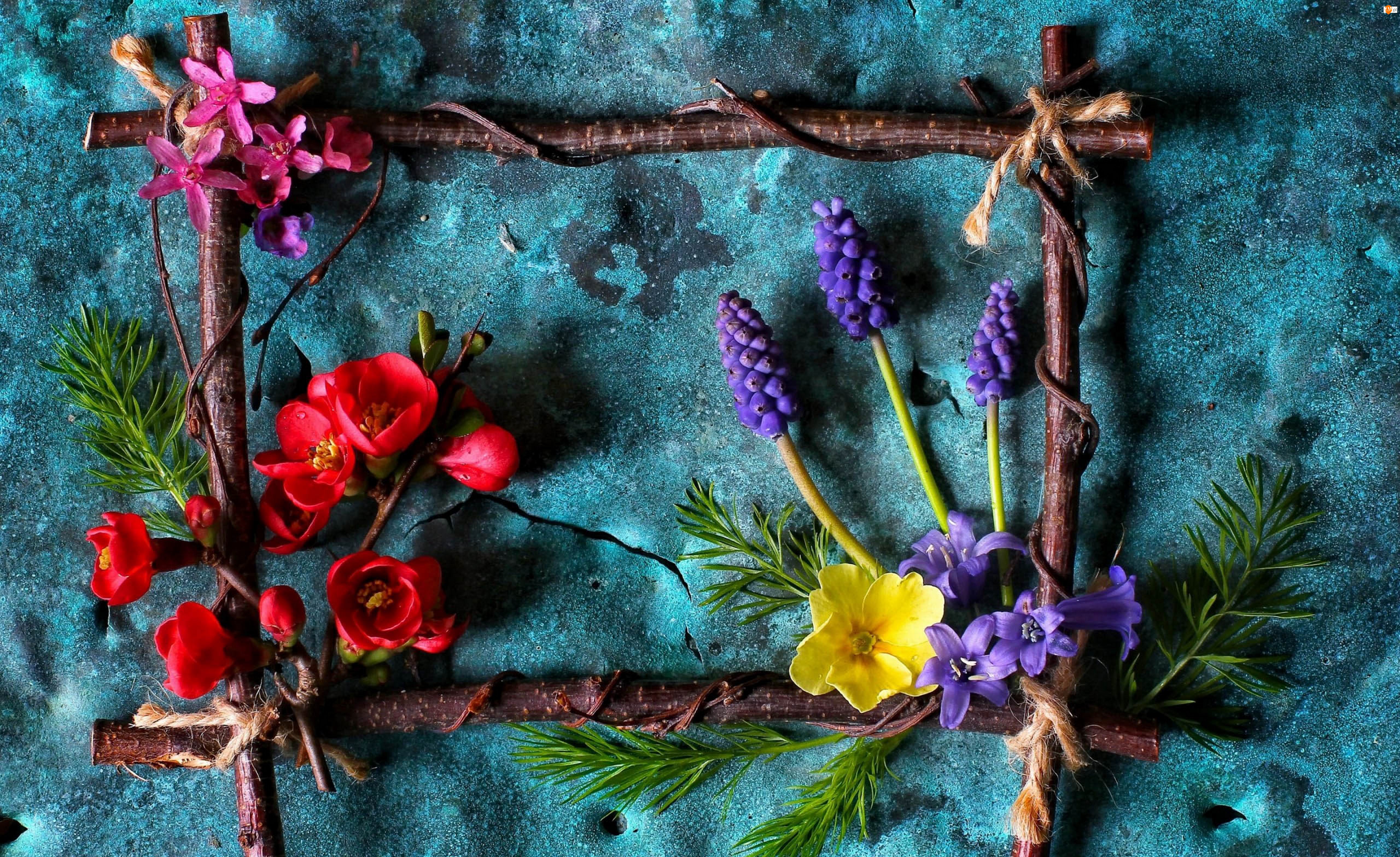 Kompozycja, Wiosenne, Hiacynt, Kwiaty, Pigwa