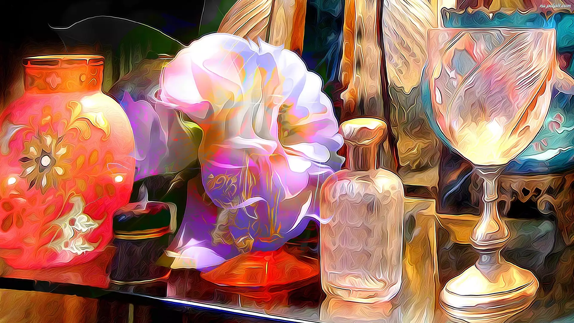 Butelka, Wazon, Kompozycja, Kwiat, Fractalius, Kieliszek
