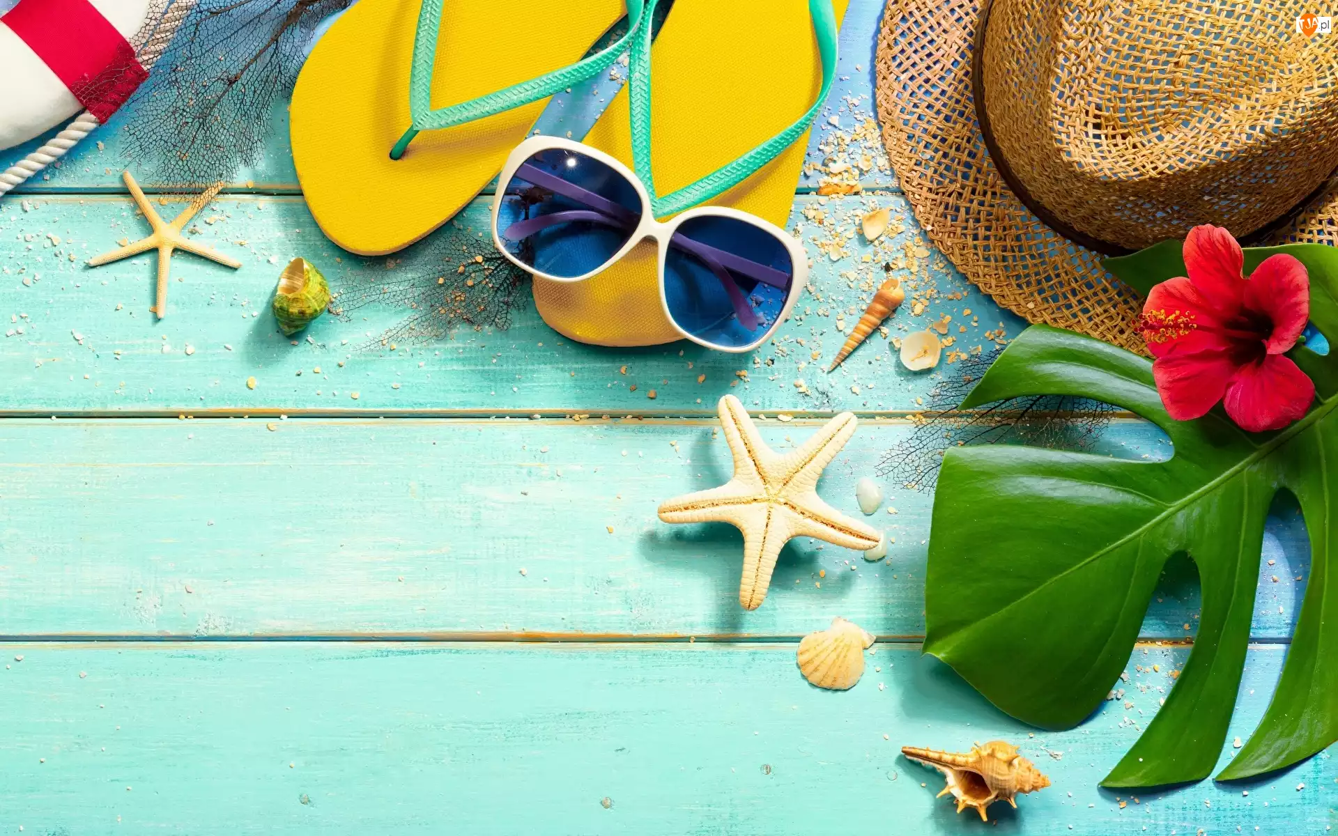 Okulary, Muszle, Kapelusz, Klapki, Kwiat
