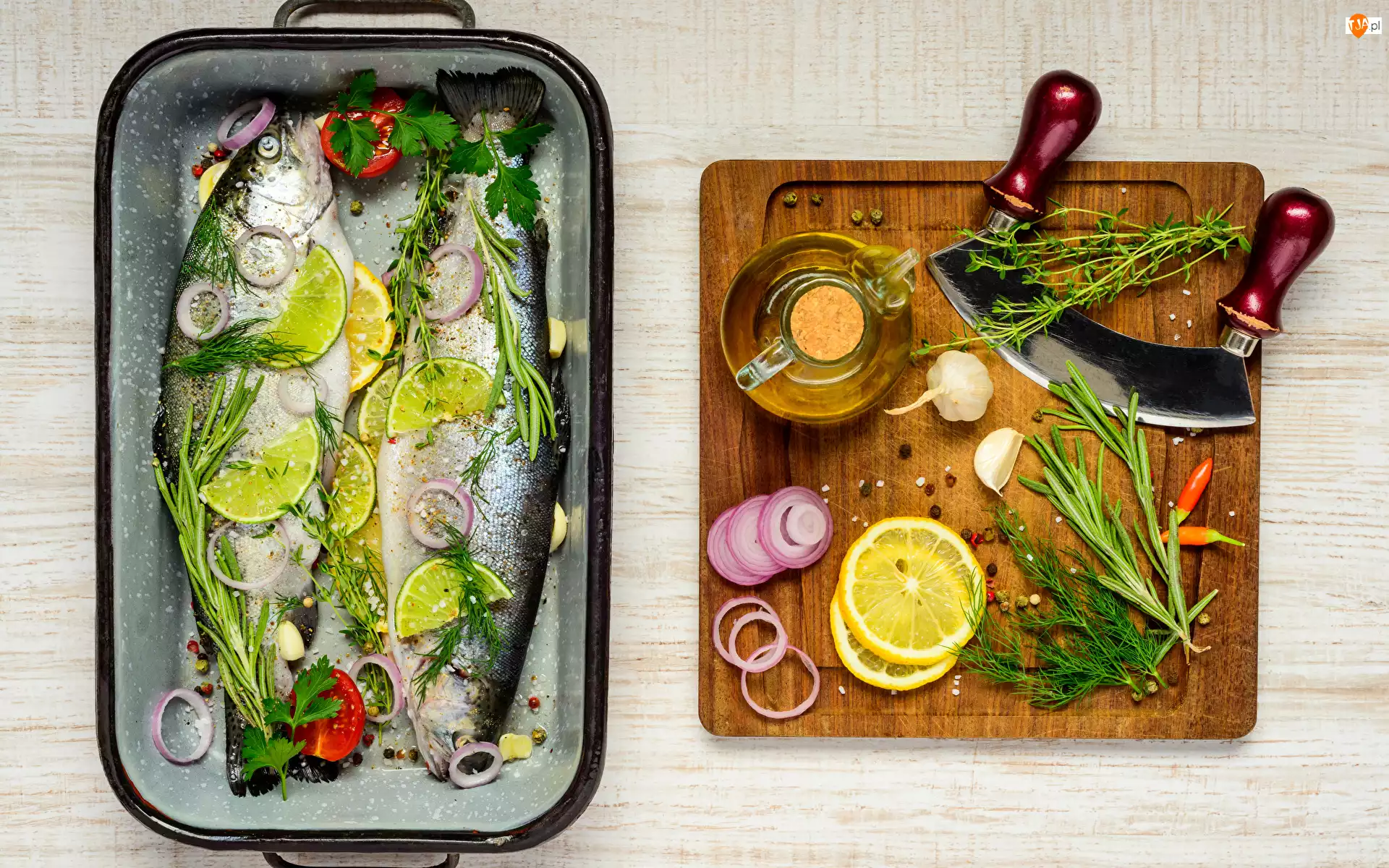 Przyprawy, Cytryna, Deska, Ryby, Foremka, Deska, Tasak