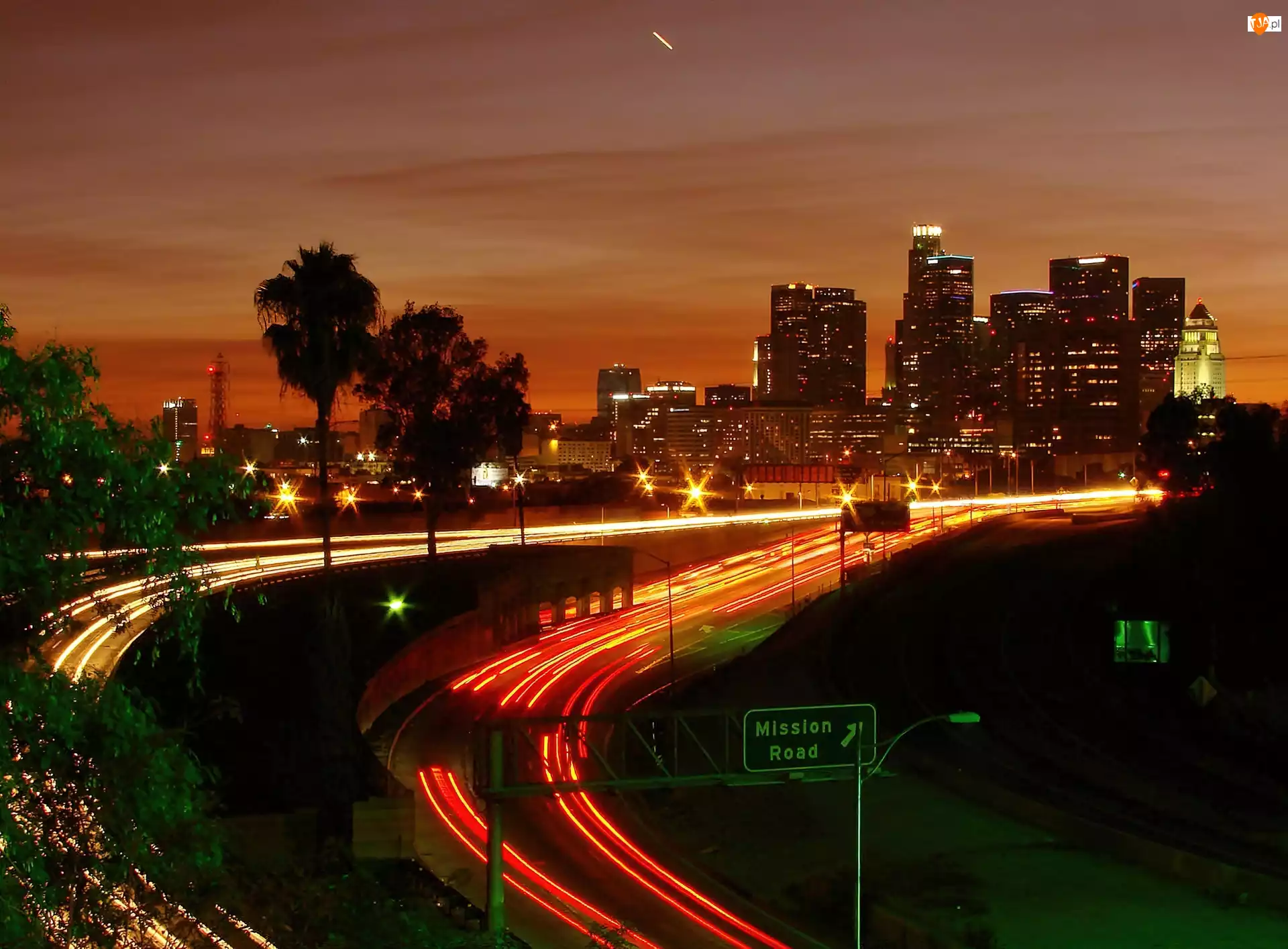 Komunikacyjne, Nocą, Panorama, Los Angeles, Drzew